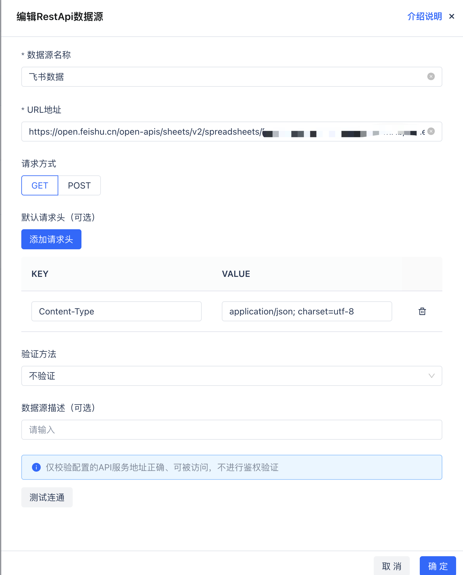 步骤2:使用RestApi的方式创建飞书数据源