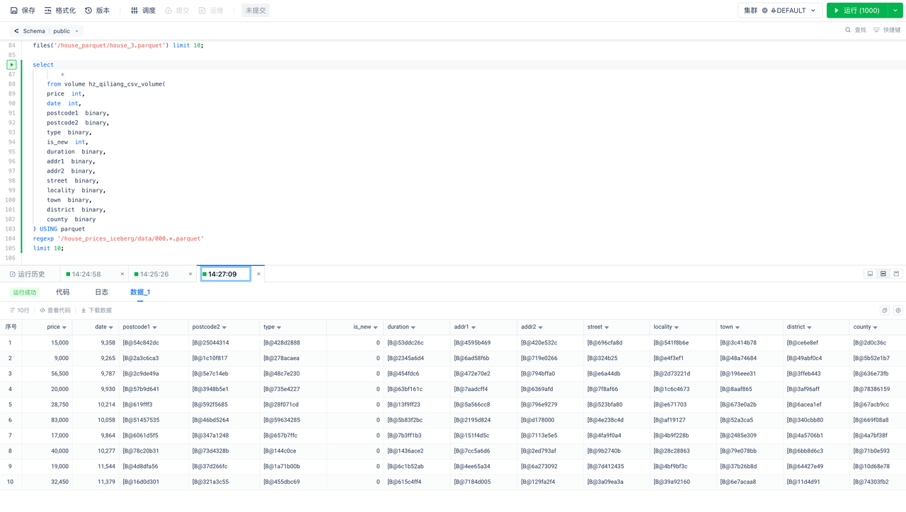 - 通过云器Lakehouse SELECT * FROM VOLUME将AWS S3 bucket的Parquet文件里的数据直接加载进云器Lakehouse的表中,实现快速数据入仓(本例中加载2000多万行的一张表,完成数据入仓仅需30秒)。
