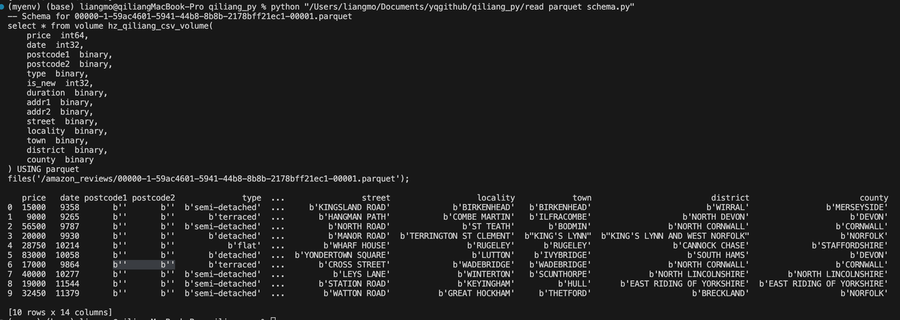 通过Python代码预览Parquet文件的schema和数据,并生成云器Lakehouse的SQL代码