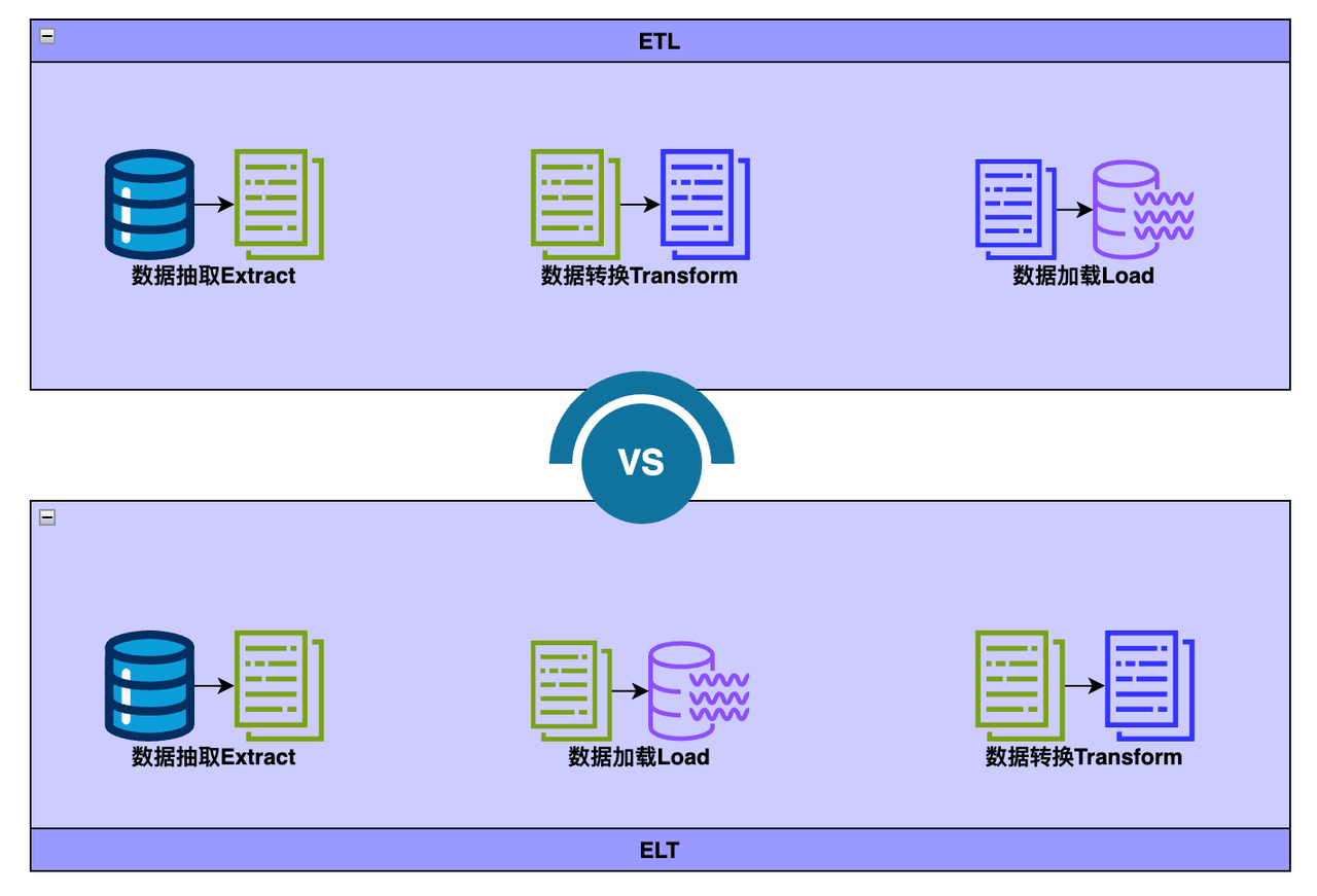 ETL 和 ELT 都描述了将数据集成用于在数据仓库、Lakehouse中进行数据分析、商业智能和数据科学之前清理、丰富和转换来自各种来源的数据的过程。