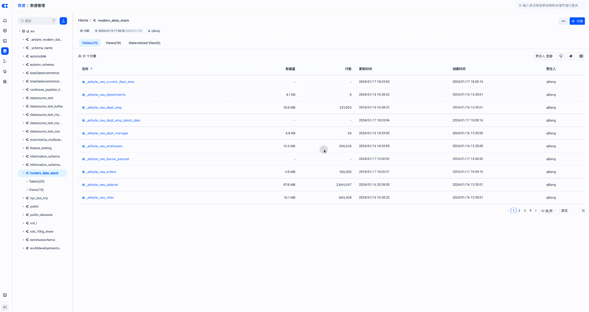 在云器Lakehouse上查看数据转换的目标表