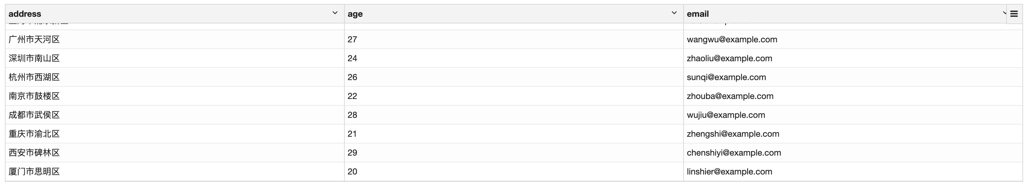 select json_extract_string(info,"$.address") as address, json_extract_int(info,"$.age") as age, json_extract_string(info,"$.email") as email from clickzetta_demo_json_schema.user_infor;