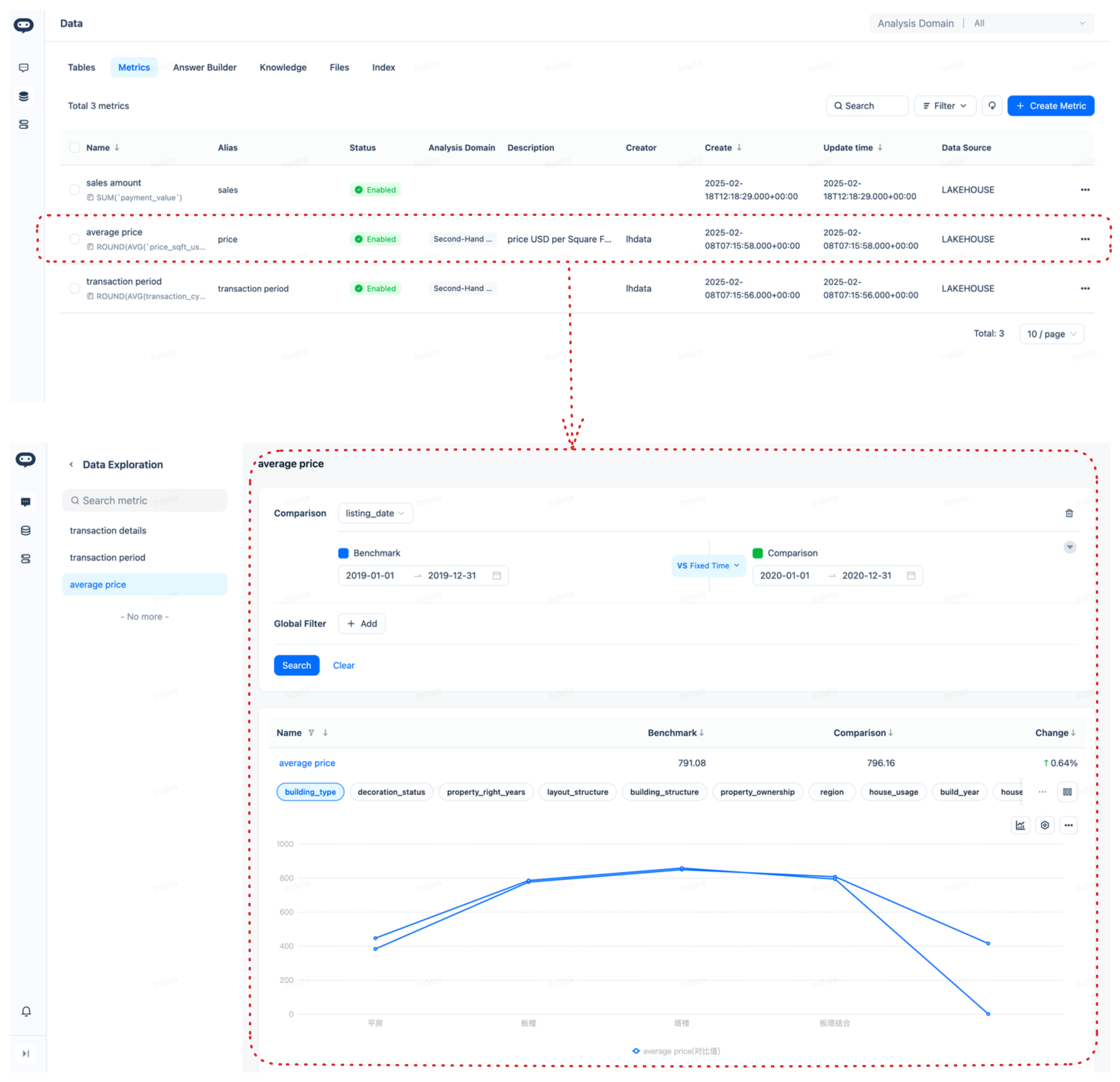 基于指标的数据分析包括不同时间段的比较分析和多维下钻。