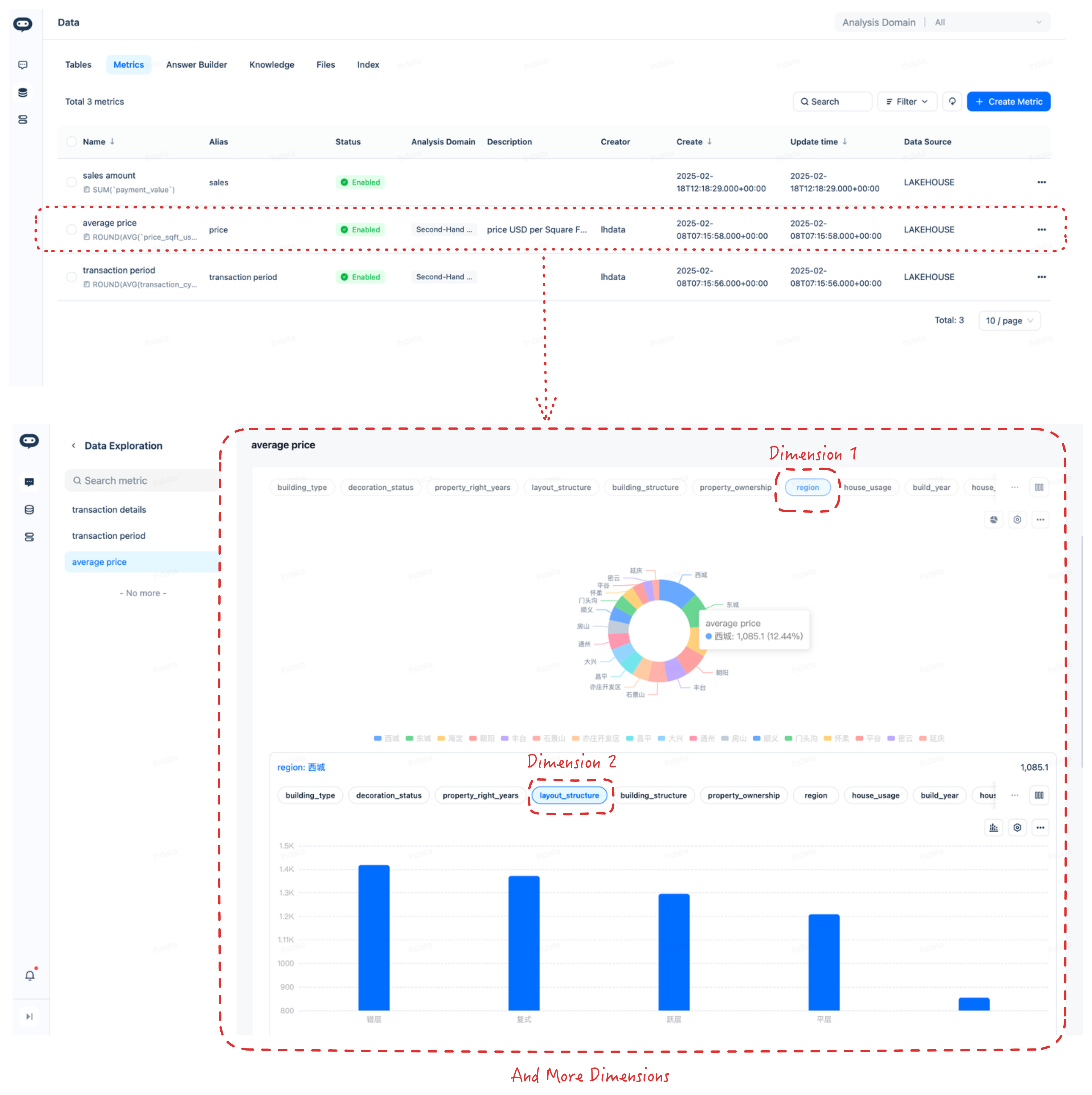 基于数据库字段计算的指标是用于评估绩效、趋势和其他关键数据点的可量化度量标准。这些指标可以通过聚合生成,即将大量数据集汇总成一个或少数几个值,也可以通过应用特定算法或计算的数据自定义代码方法生成。DataGPT 利用大型模型提供了一种自动化的方式,通过大型模型创建这些指标,简化了这一过程,减少了人工干预的需求。这些指标为理解复杂数据提供了一种简洁的方式,有助于做出明智的决策。