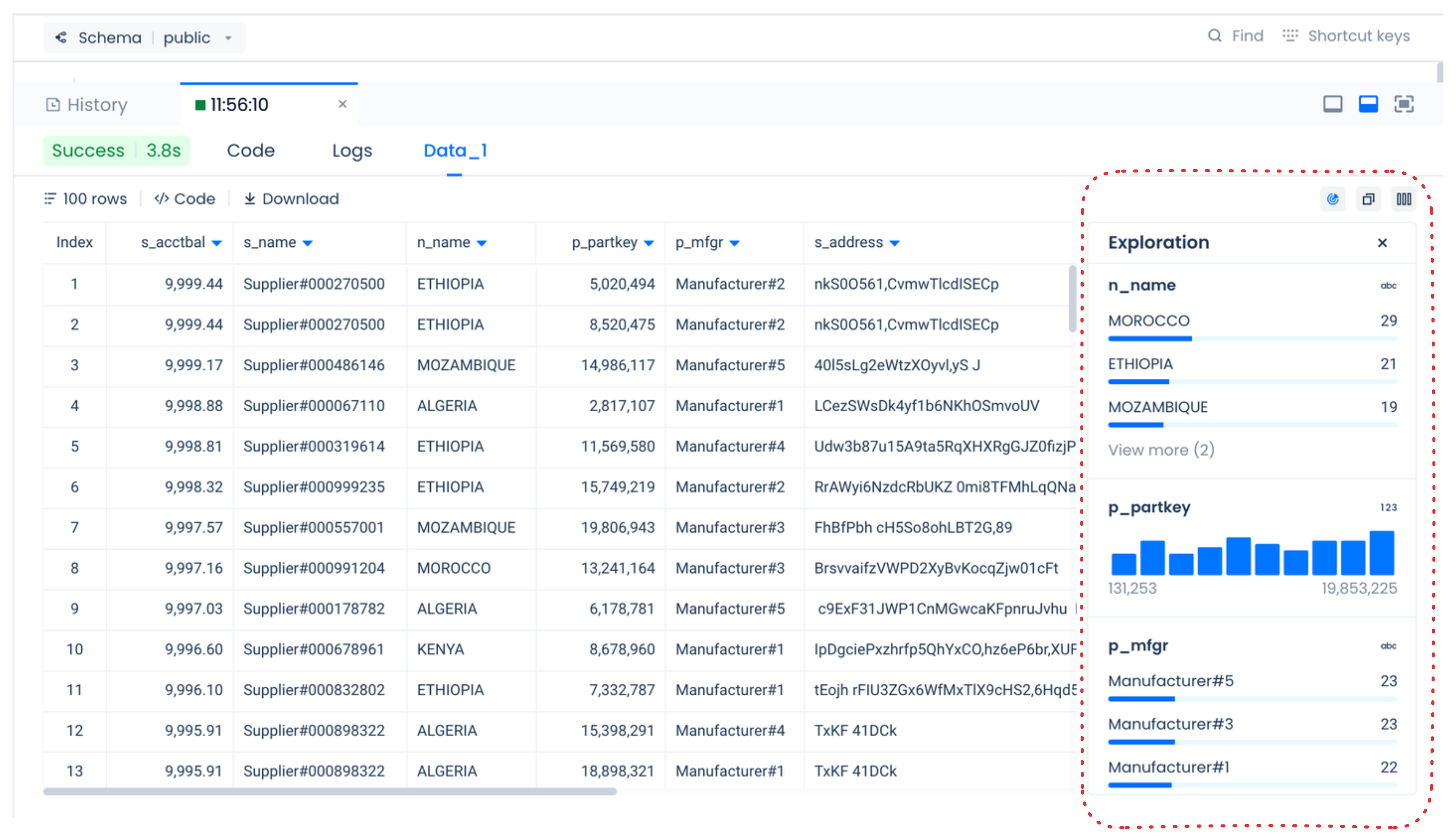 在 Lakehouse Studio 中运行查询时,您可以选择将结果的数据探查可视化。