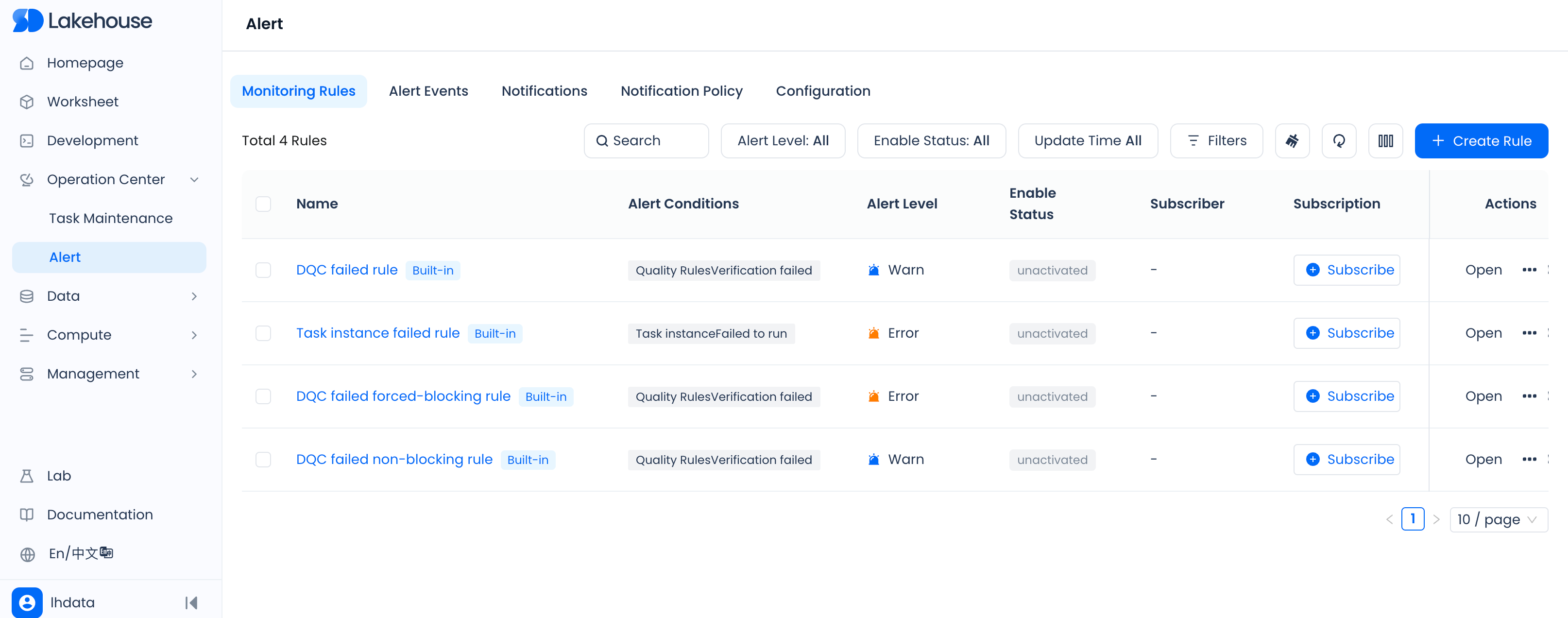 - 用户/角色管理,管理和创建 Lakehouse 用户和角色。