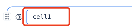 | 2 | ![]() | 单元格名称。当用户新创建一个单元格时,系统会默认填写一个单元格名称。双击该区域支持用户重命名该单元格名称。 notebook允许用户在python脚本中直接引用单元格的输出值,需要用户明确输出信息的单元格名称,通过单元格名称进行数据定位。 单元格只支持英文大小写、数字、下划线_ 。 |