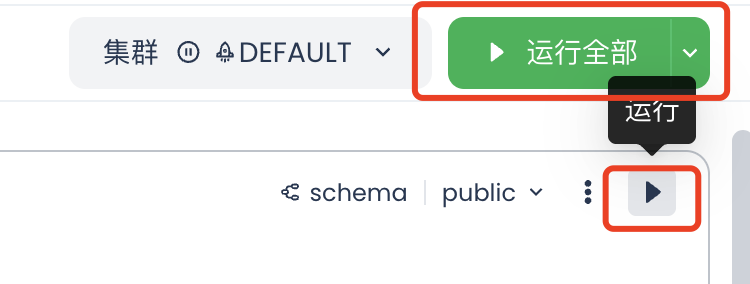 全部运行:点击后,会按照单元顺序,自上而下执行。若其中一个单元cell执行失败或暂停,则下方所有单元会直接阻断执行,即下方所有单元cell状态会变更为暂停。