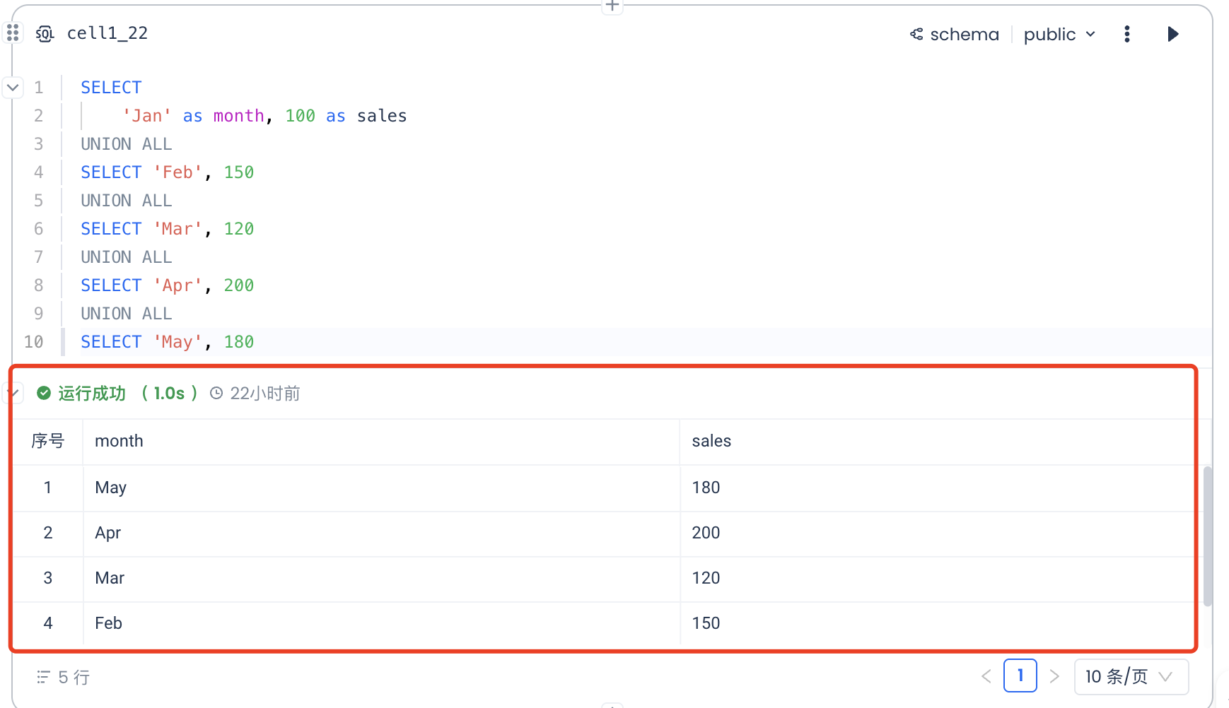 点击运行后,在单元格内可看到执行的结果。