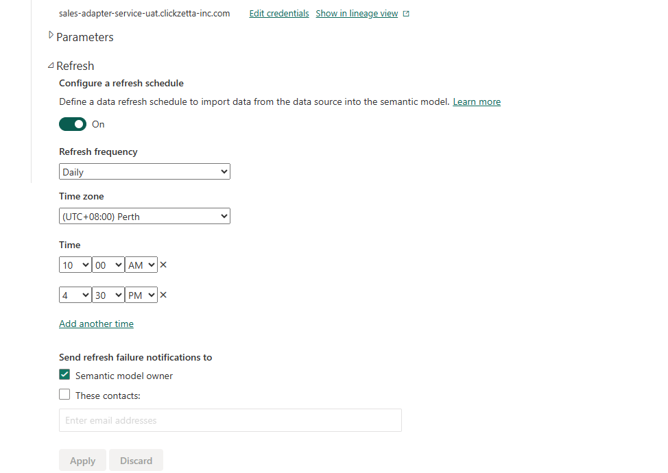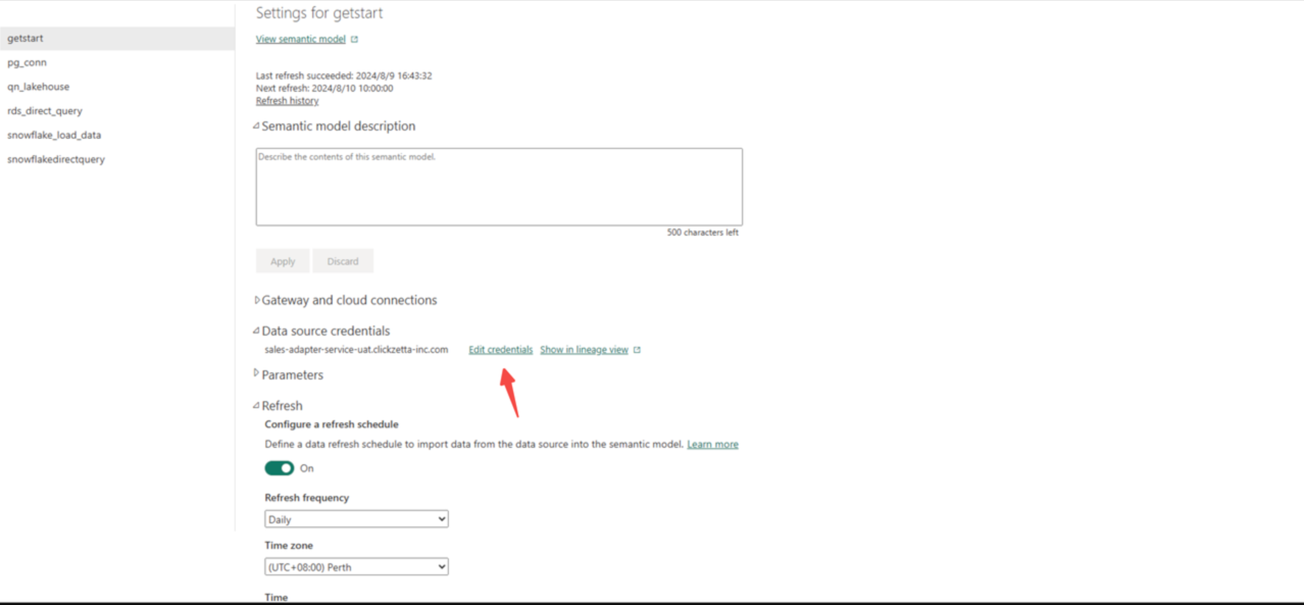 在Power Service中找到刚发布的仪表盘配置调度信息和密码认证信息