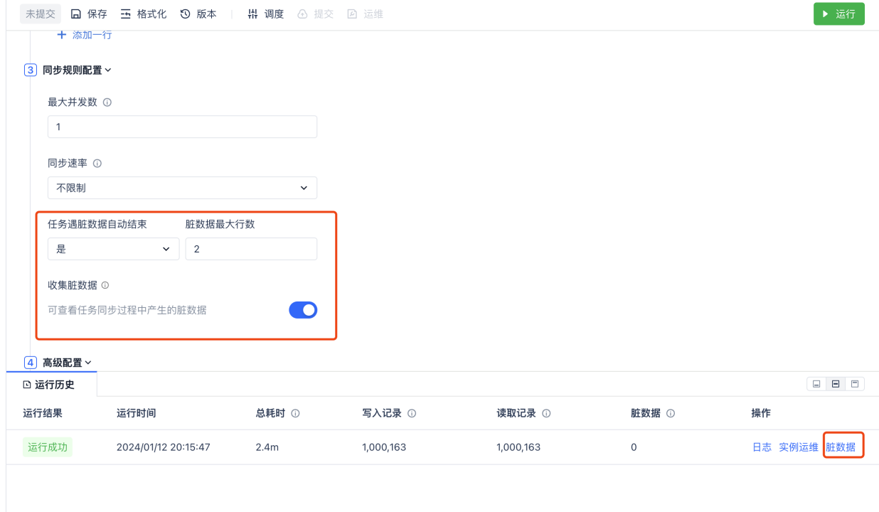 - 数据集成:支持脏数据配置能力,同时允许用户查看脏数据的样例和下载。