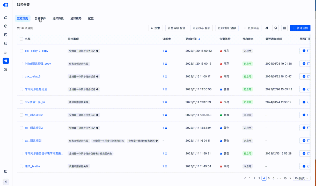 - 监控告警:优化实时同步任务监控告警信息的展示,细化具体的单个的表
