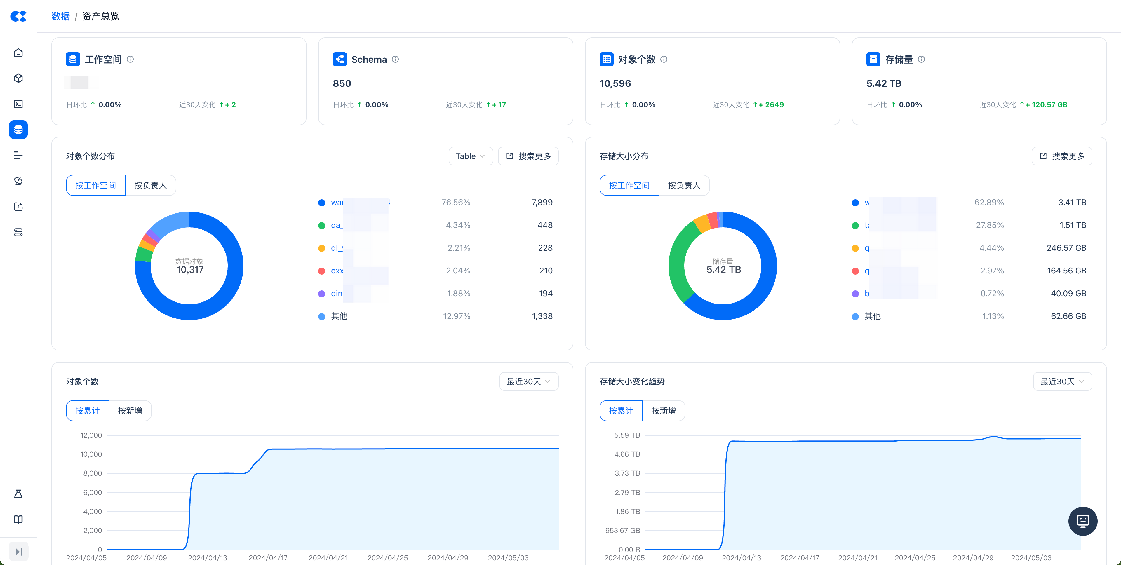 - 数据目录:支持修改表备注、删除对象等可视化白屏化管控能力