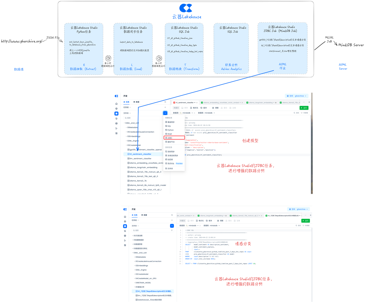 ML/AI任务开发:从MindsDB Web IDE到云器Lakehouse Studio的JDBC任务开发。