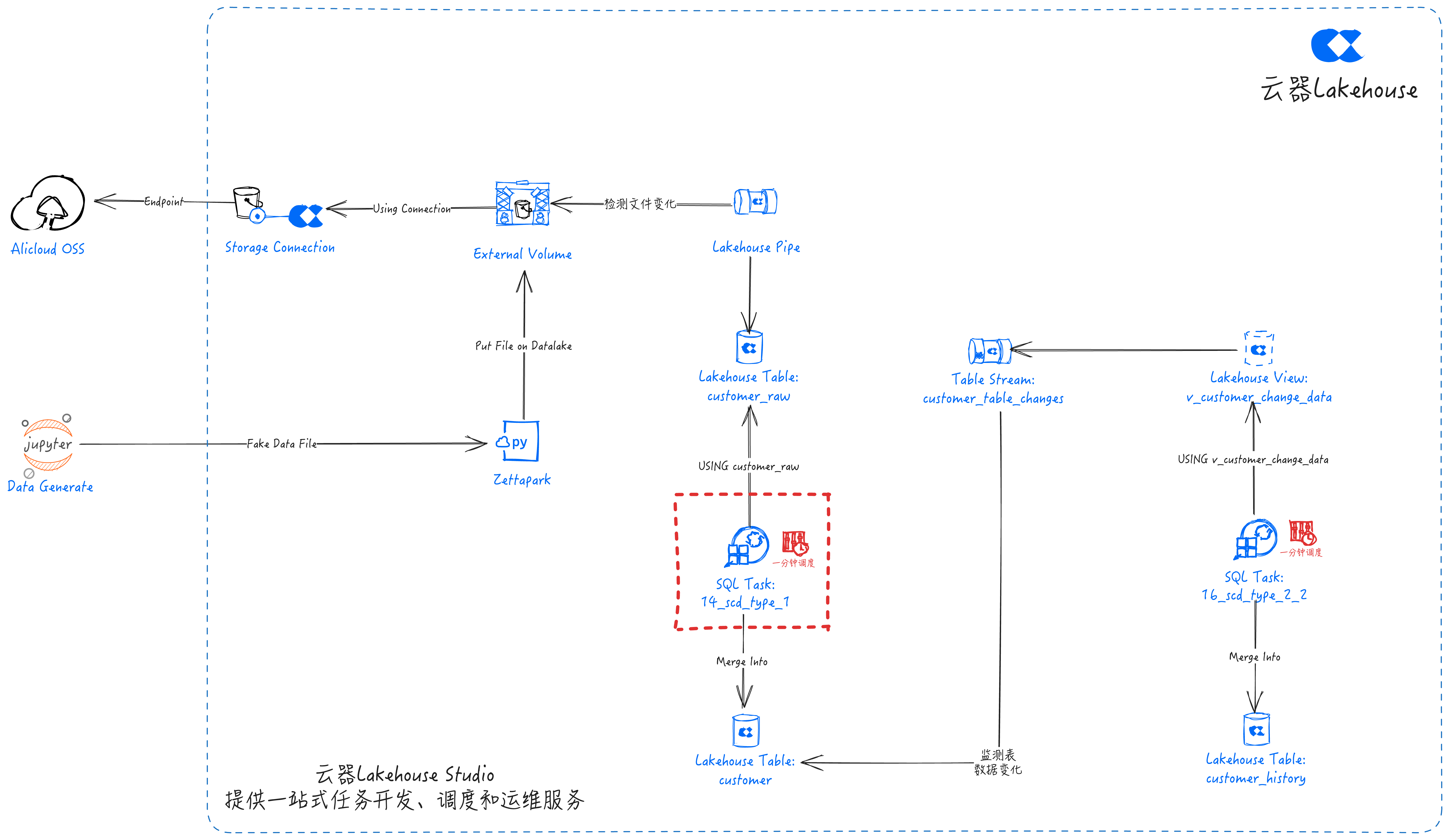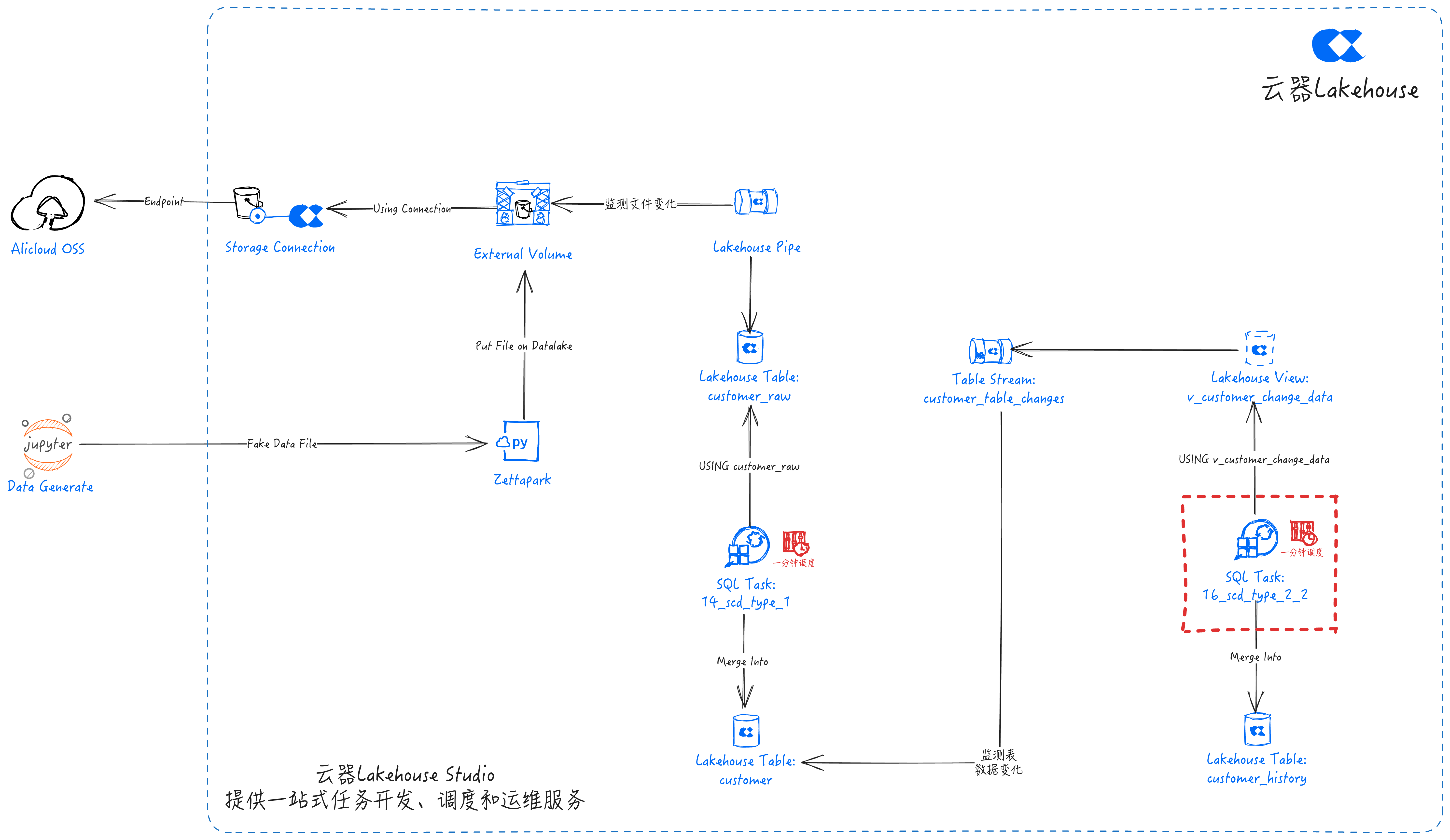using v_customer_change_data ccd -- v_customer_change_data 是一个视图,包含插入/更新到 customer_history 表的逻辑。