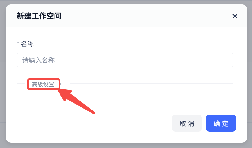 1)在新建工作空间弹窗中,点击并展开【高级设置】;