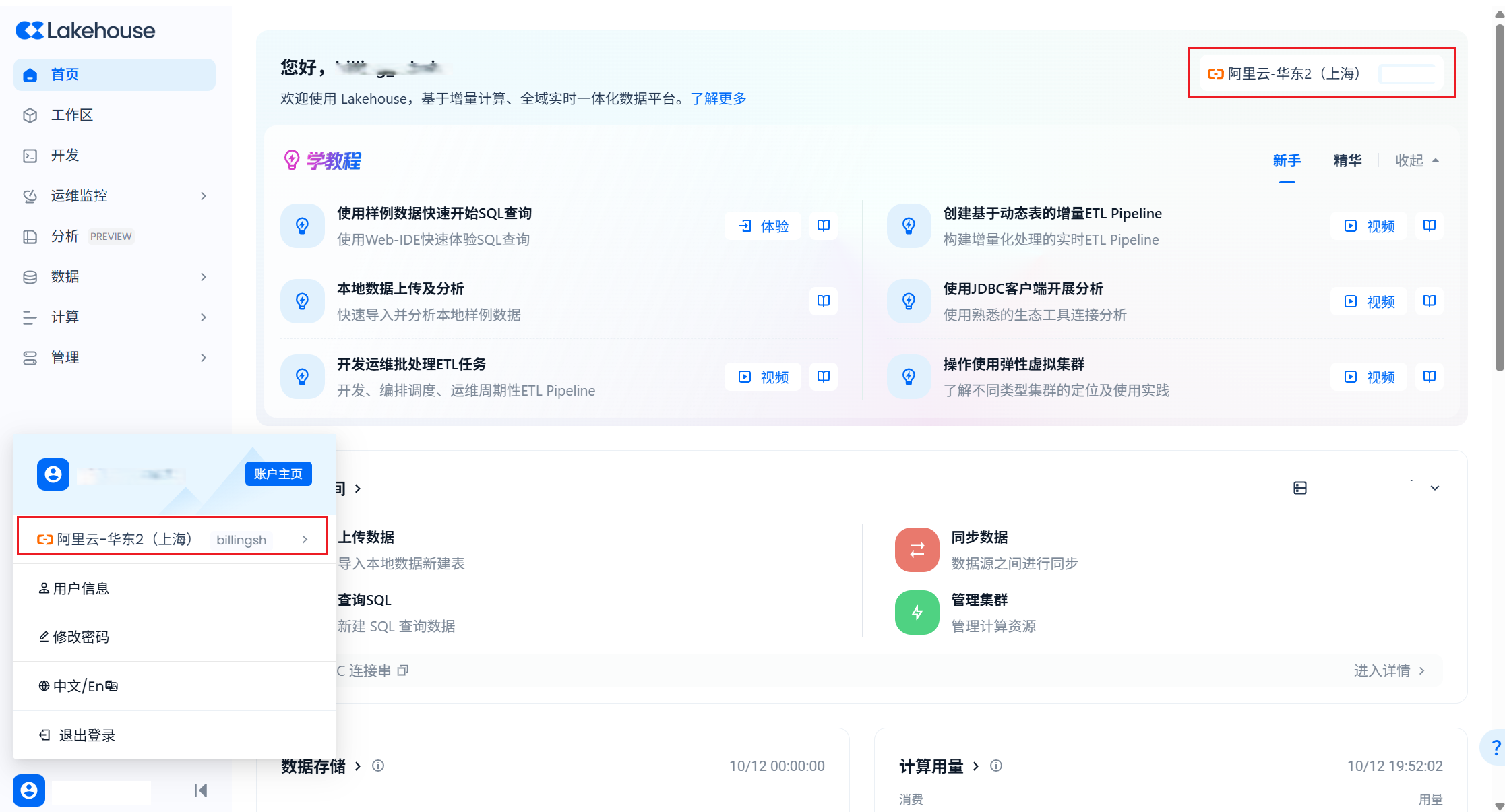 - 了解您的ClickZetta Lakehouse实例所在的云平台和地域(Region)