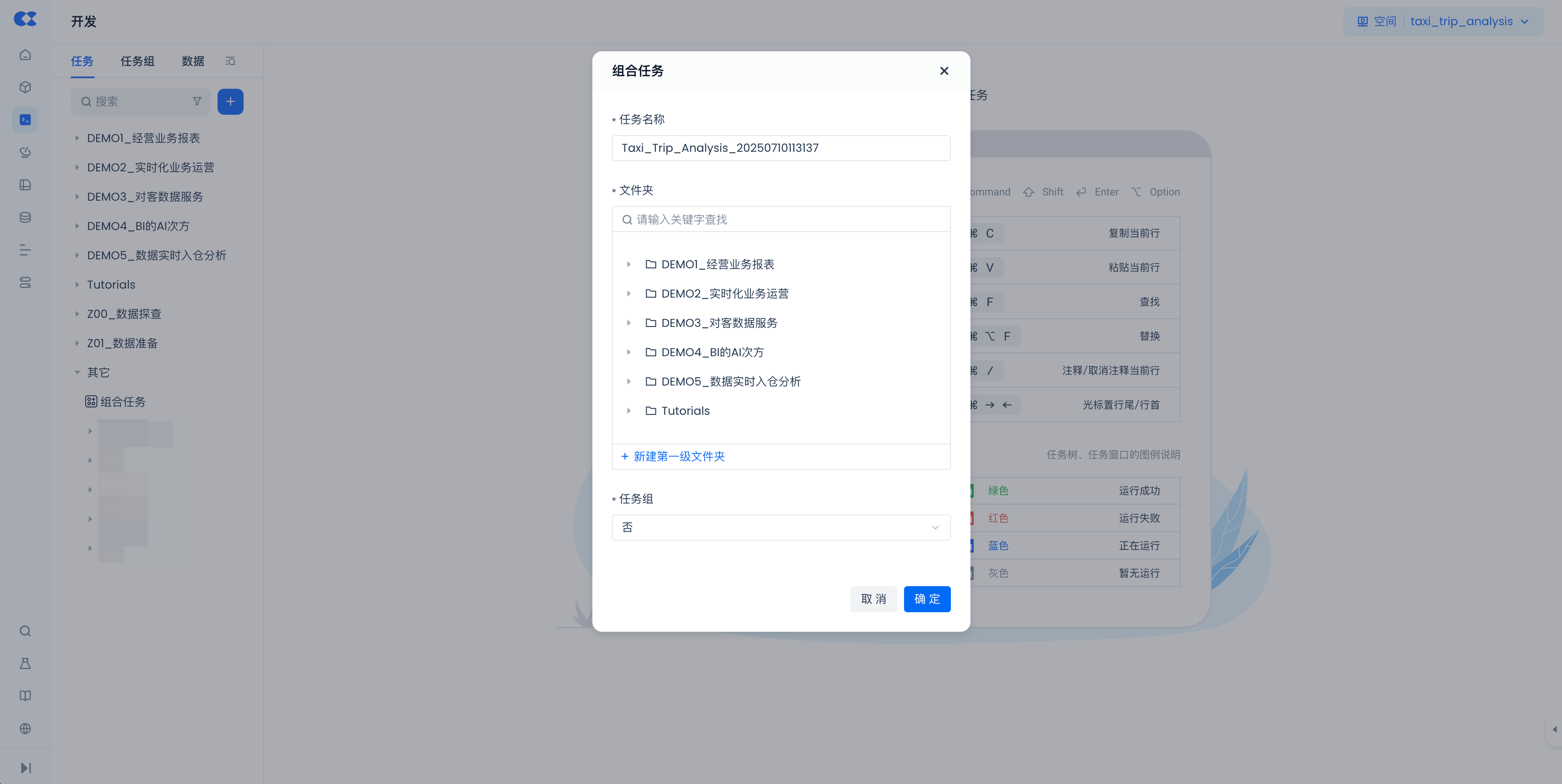在创建组合任务的弹框中,和其它普通SQL任务一样,填写需要的信息: