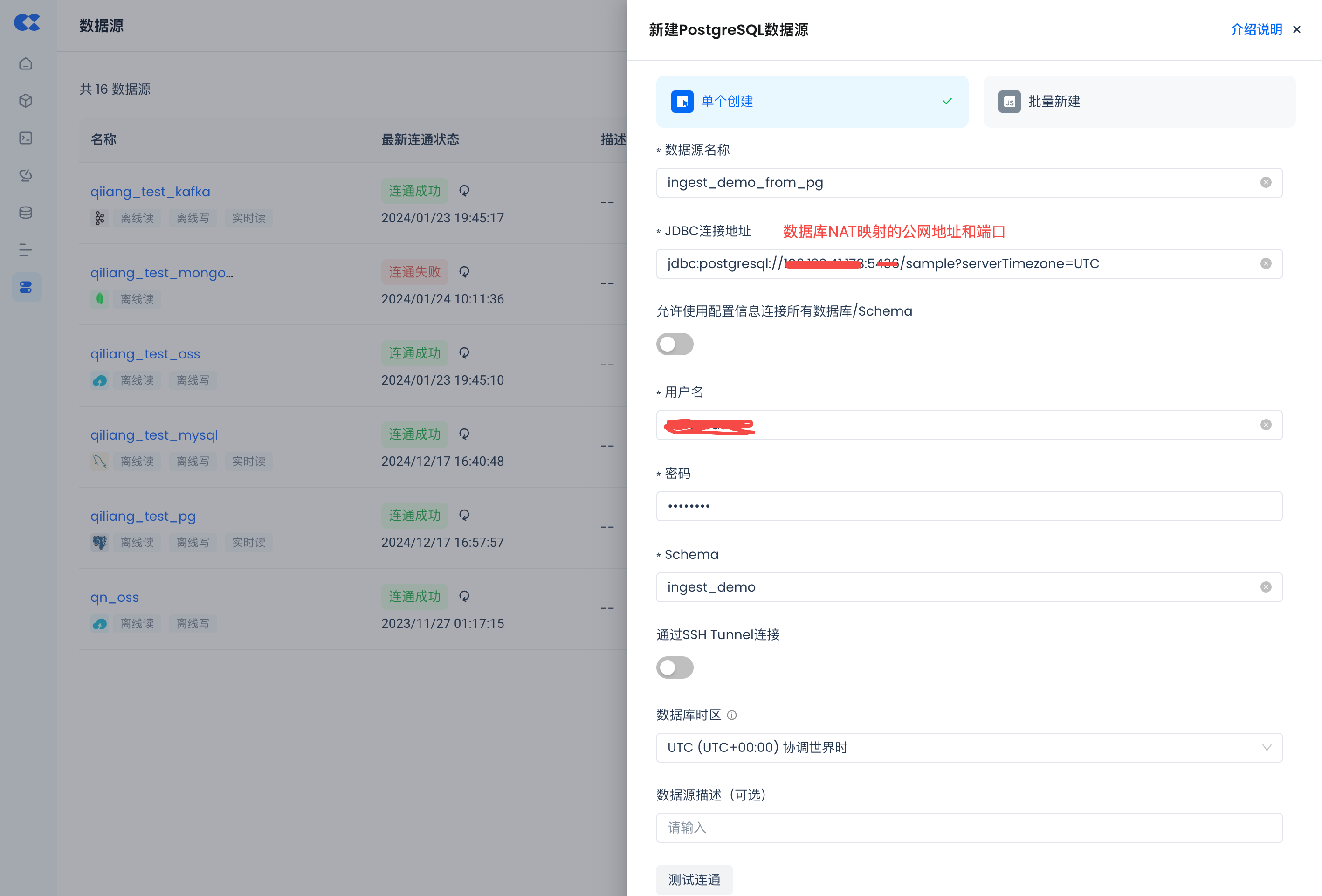 - 请注意务必配置正确的数据库所在的时区,避免数据同步失败。