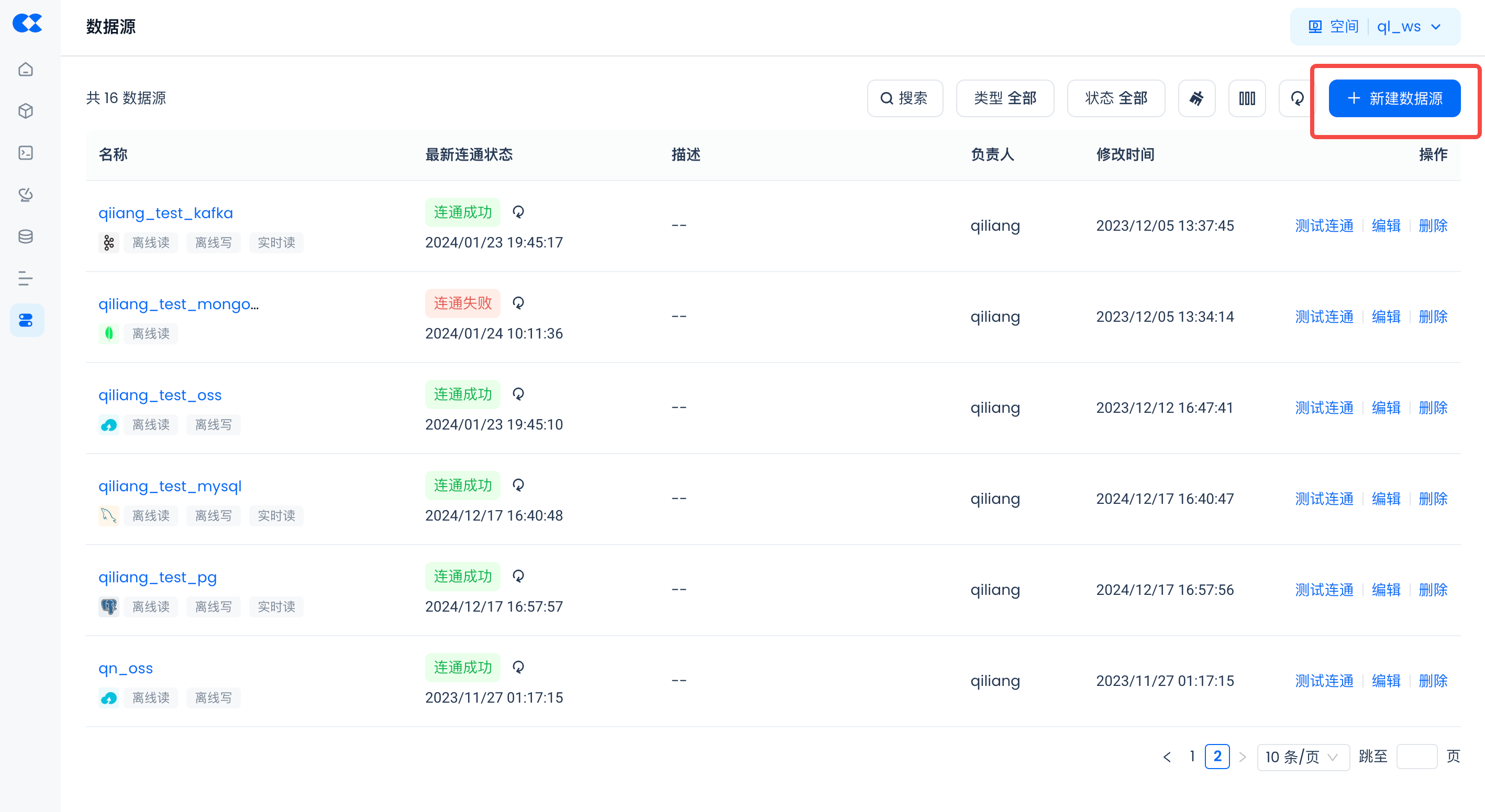 导航到管理->数据源,单击“新建数据源”并选择Postgres以创建Postgres数据源,使得Postgres能被云器Lakehouse可访问。