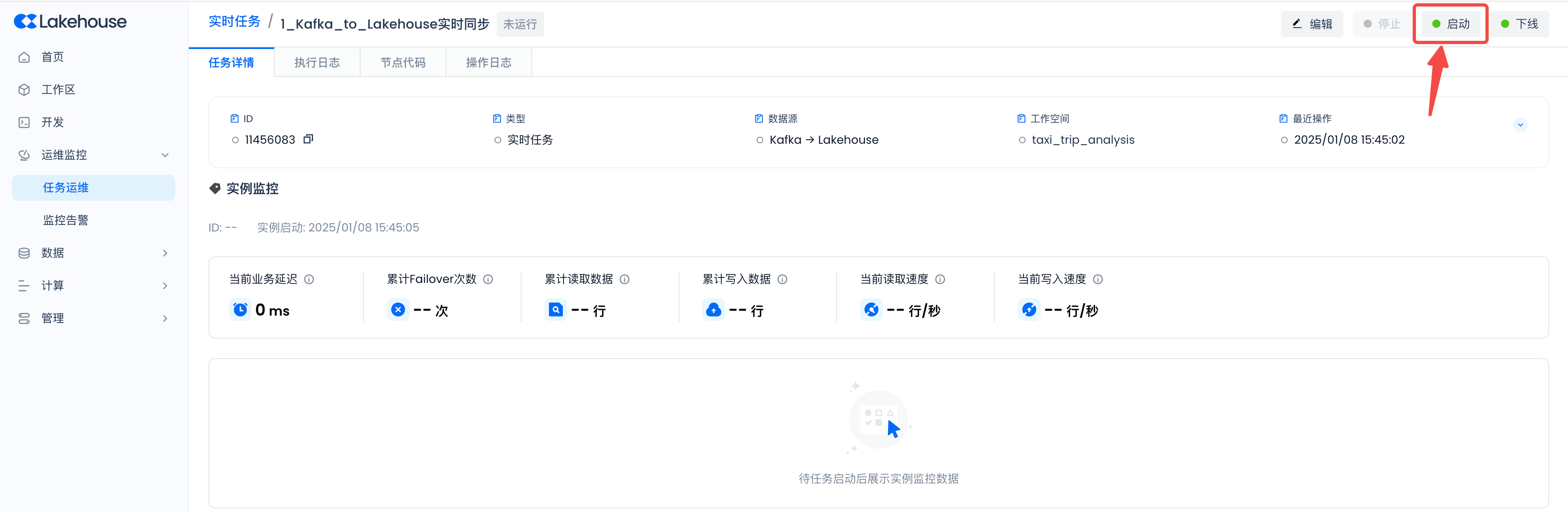 在运维中心,启动实时同步任务,观察任务运行指标并验证数据同步结果是否正常。