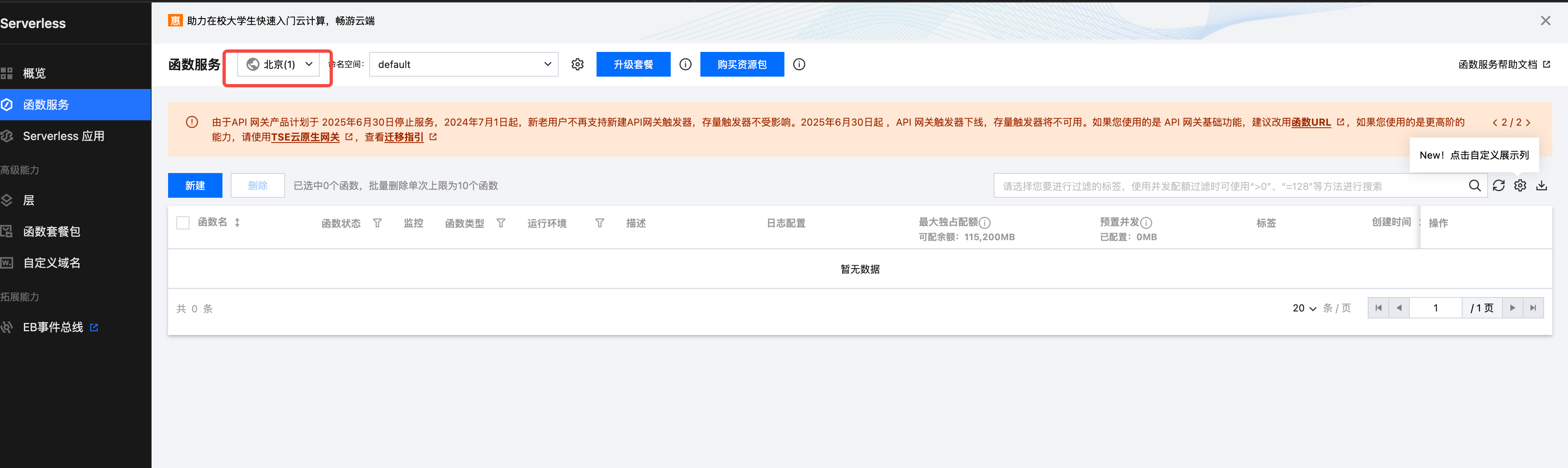 步骤1: 用户开通腾讯云的云函数计算服务。云函数 region 保持和云器 Lakehouse开服区域一致