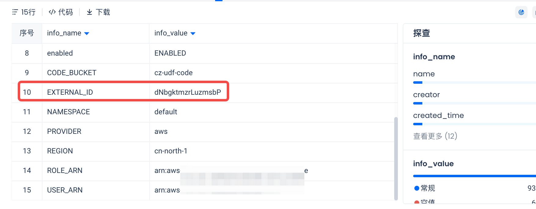- 在创建存储连接的过程中,云器 Lakehouse 会生成此EXTERNAL ID,可以将此EXTERNAL ID 配置到步骤3 创建的 AWS IAM 角色(
