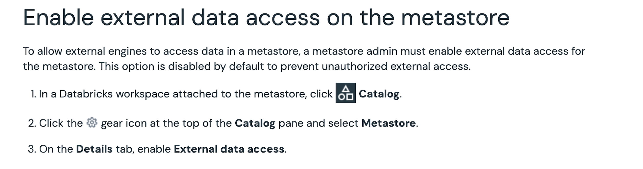 - 要求必须和Lakehouse所在的存储位置需在同一云平台。如Lakehouse在AWS,则Databricks存储须在S3。