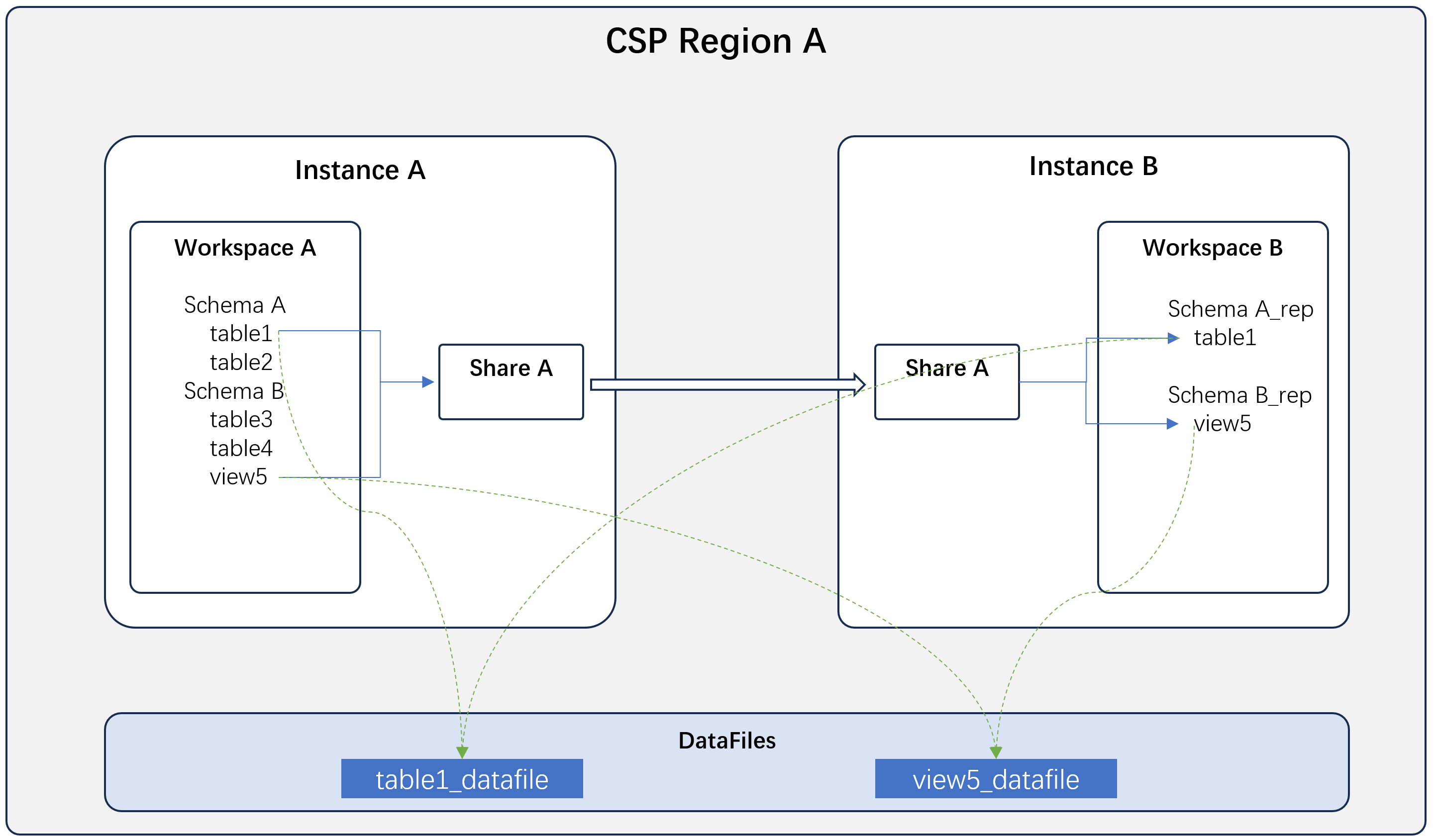 支持使用 all tables in schema <schema_name> 和 all views in schema <schema_name> 的方式,将指定schema下的所有table和view对象加入到共享对象share中。 该操作包含“未来”创建在指定schema中的所有table和view对象,请谨慎操作。