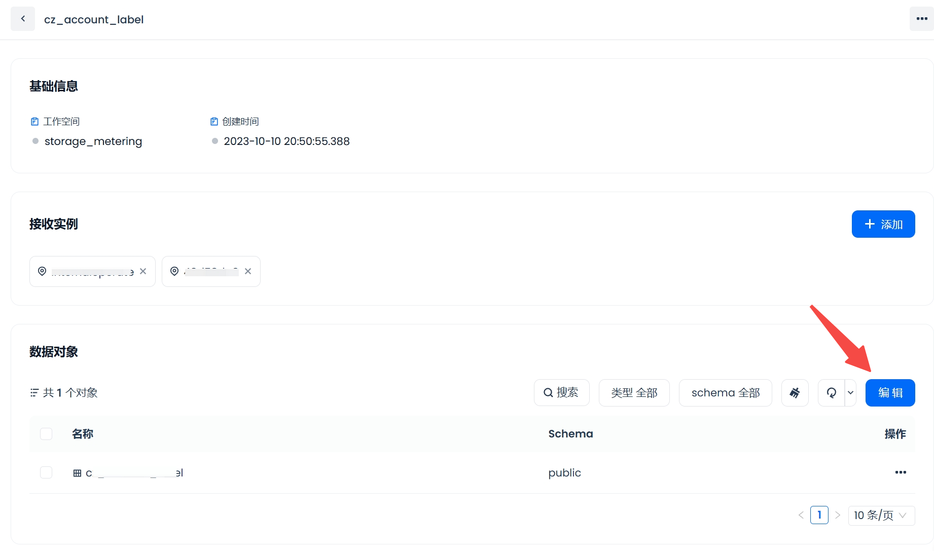 在数据分享列表页,点击要添加数据对象的share对象名称,进入share对象详情页面。点击“编辑”按钮,在弹窗中选择要添加或删除的数据对象。点击“确定”完成分享数据对象的更新。不可添加来源于其他share对象的数据。
