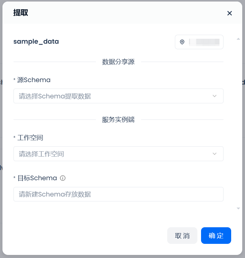 首先需要选择“源schema”,即需要提取该分享中哪些schema的数据。如果数据分享中包含多个schema,需要操作多次提取。