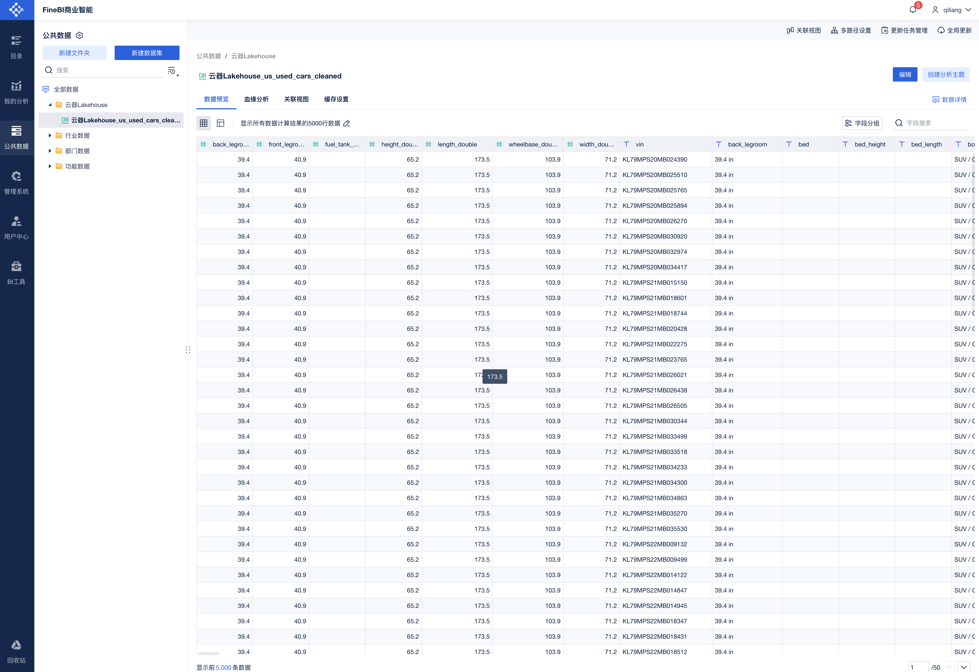 表明云器Lakehouse里的表对帆软BI的“公共数据”可用。