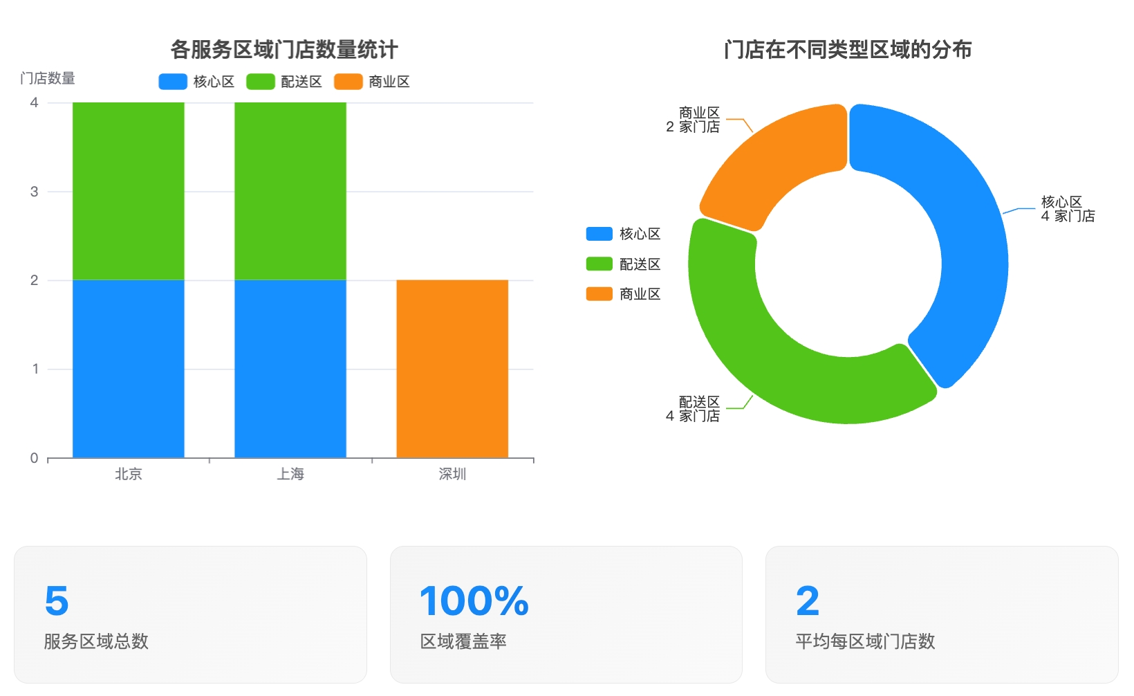 - 区域统计分析:统计各服务区域内的门店分布情况预览