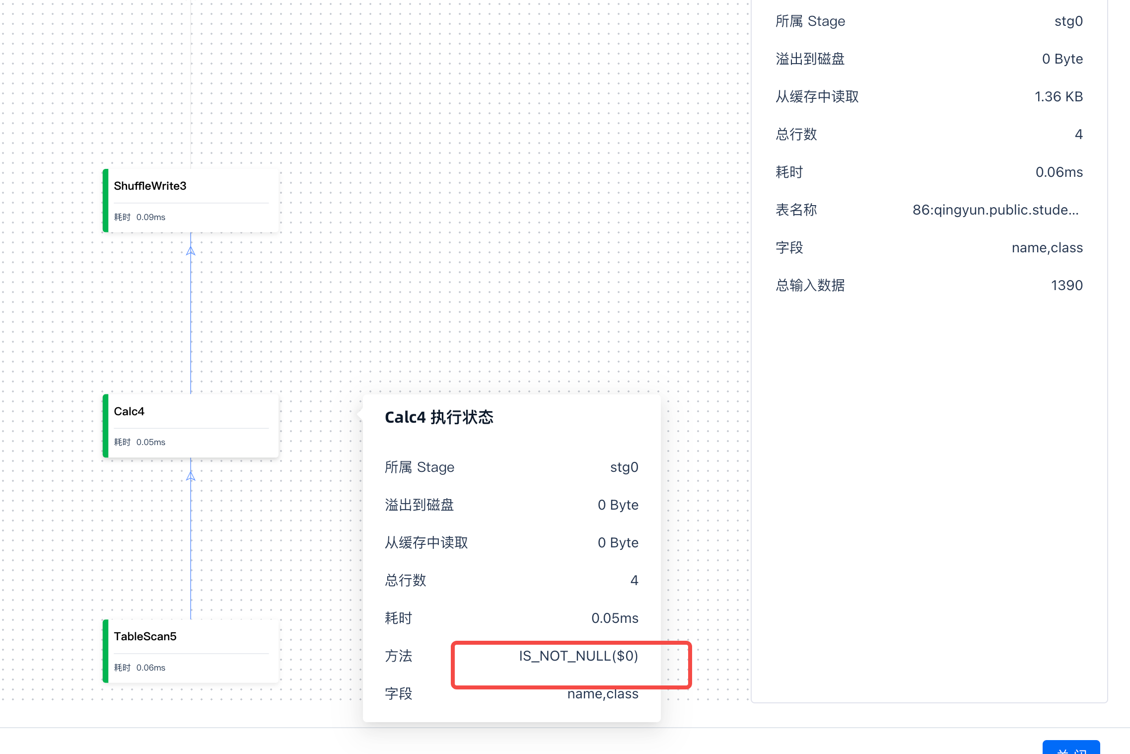 在执行阶段,您可以通过点击执行的operator来查询具体的步骤和策略。例如,将鼠标移动到具体的operator上,可以对应到SQL中具体执行的算子。这有助于您发现具体哪个执行的operator导致作业缓慢。