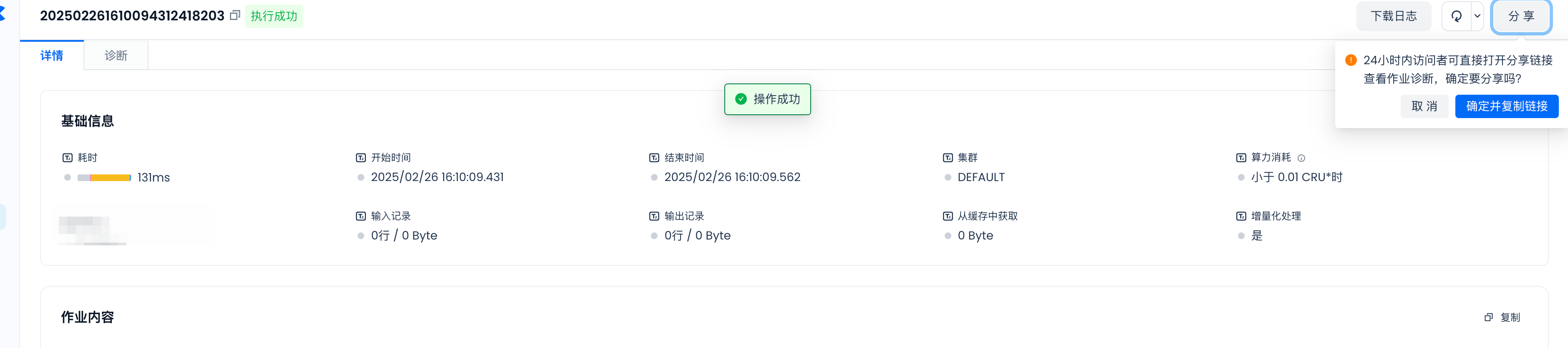 - 执行计划复杂:作业可能需要较长时间进行优化。请耐心等待,正常情况下不会超过10分钟。