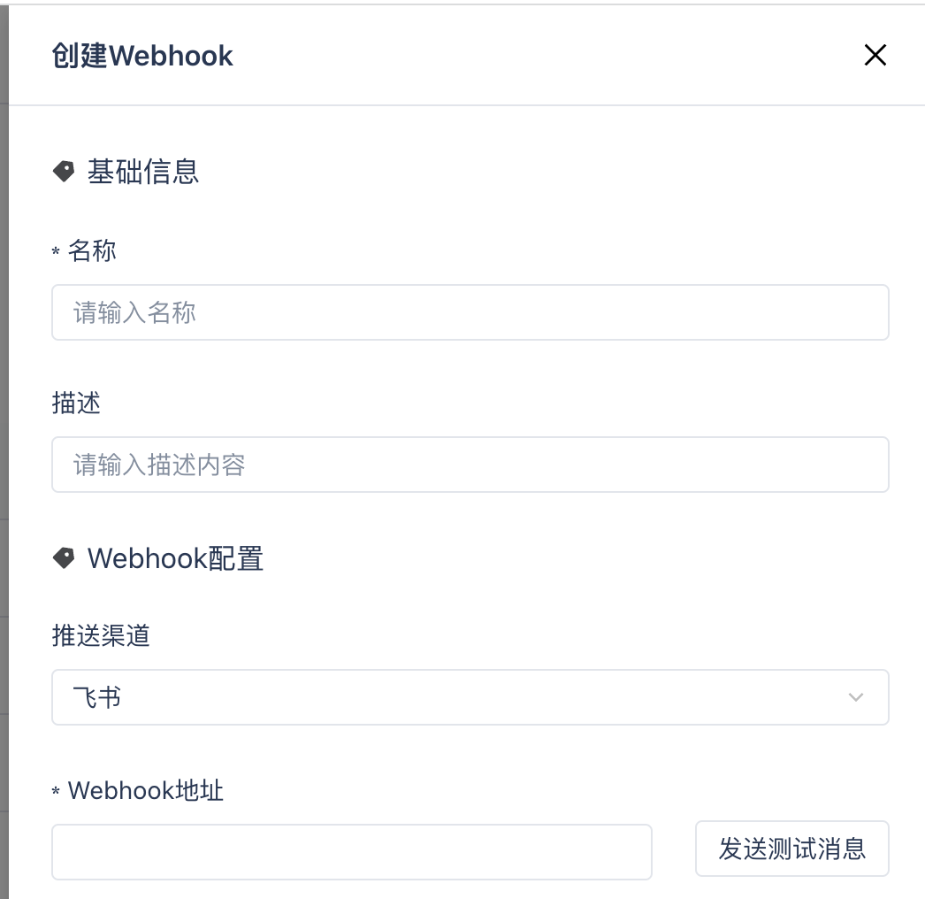 Webhook配置用于定义告警推送所需的Webhook渠道,当前支持飞书和钉钉。