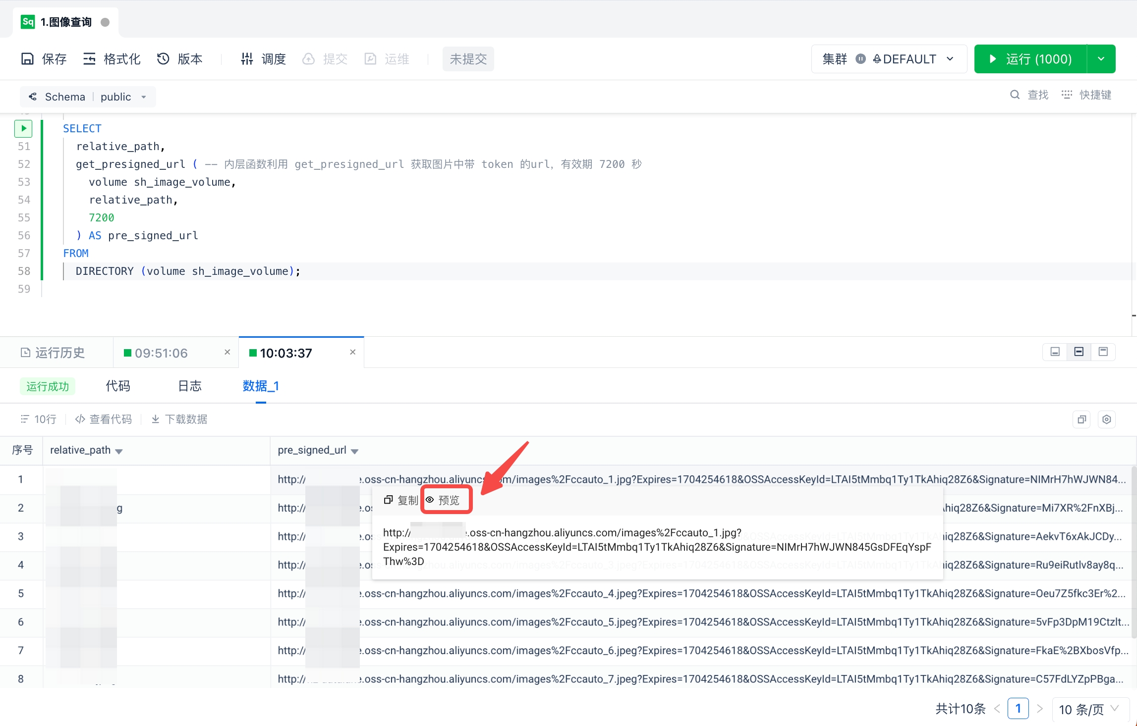 函数获取图片的访问 url 时,可以直接点击 url -> 预览 直接打开图片: