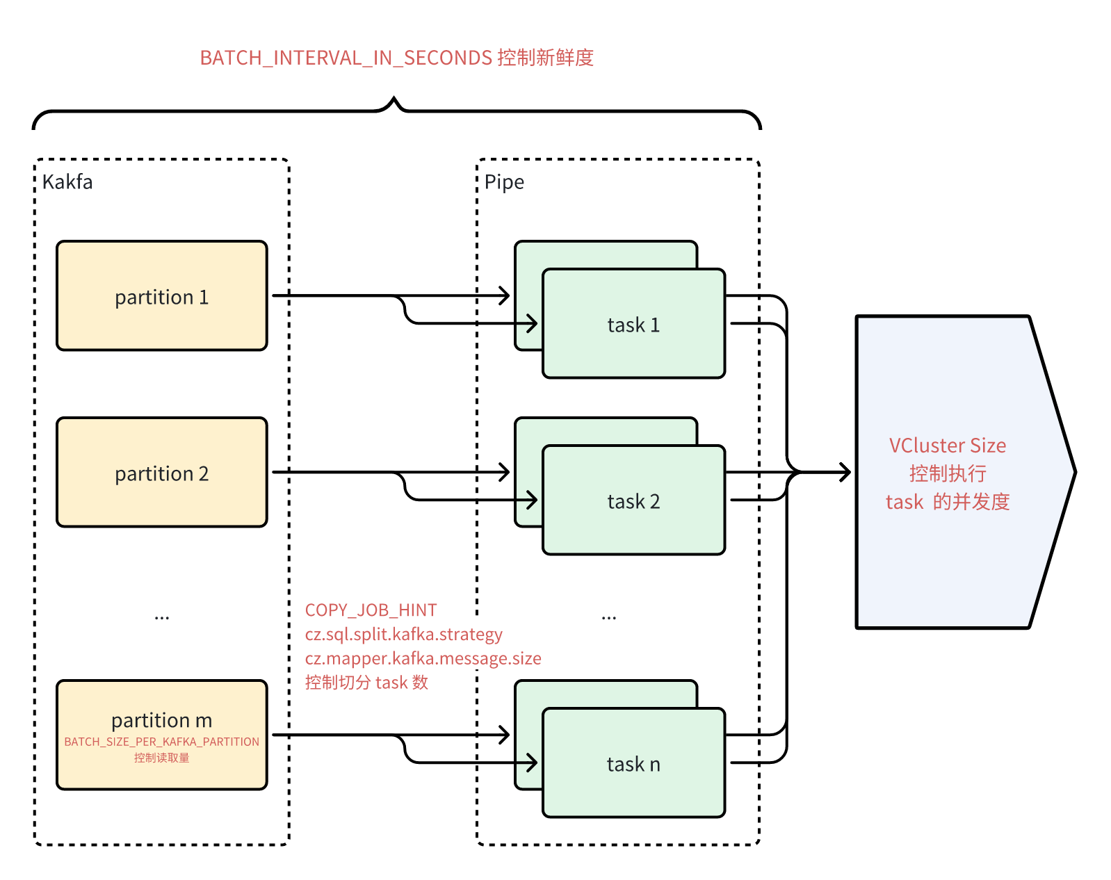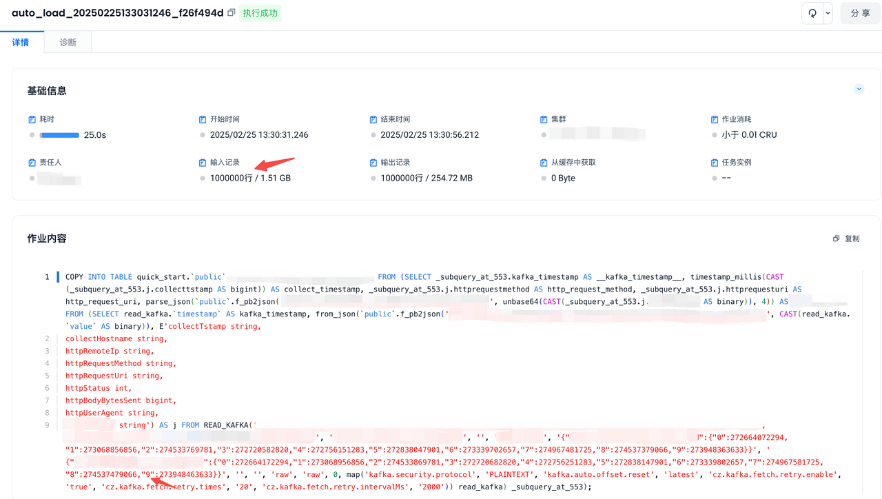 COPY_JOB_HINT = '{"cz.sql.split.kafka.strategy":"size","cz.mapper.kafka.message.size":"200000"}' -- to accelerate load
