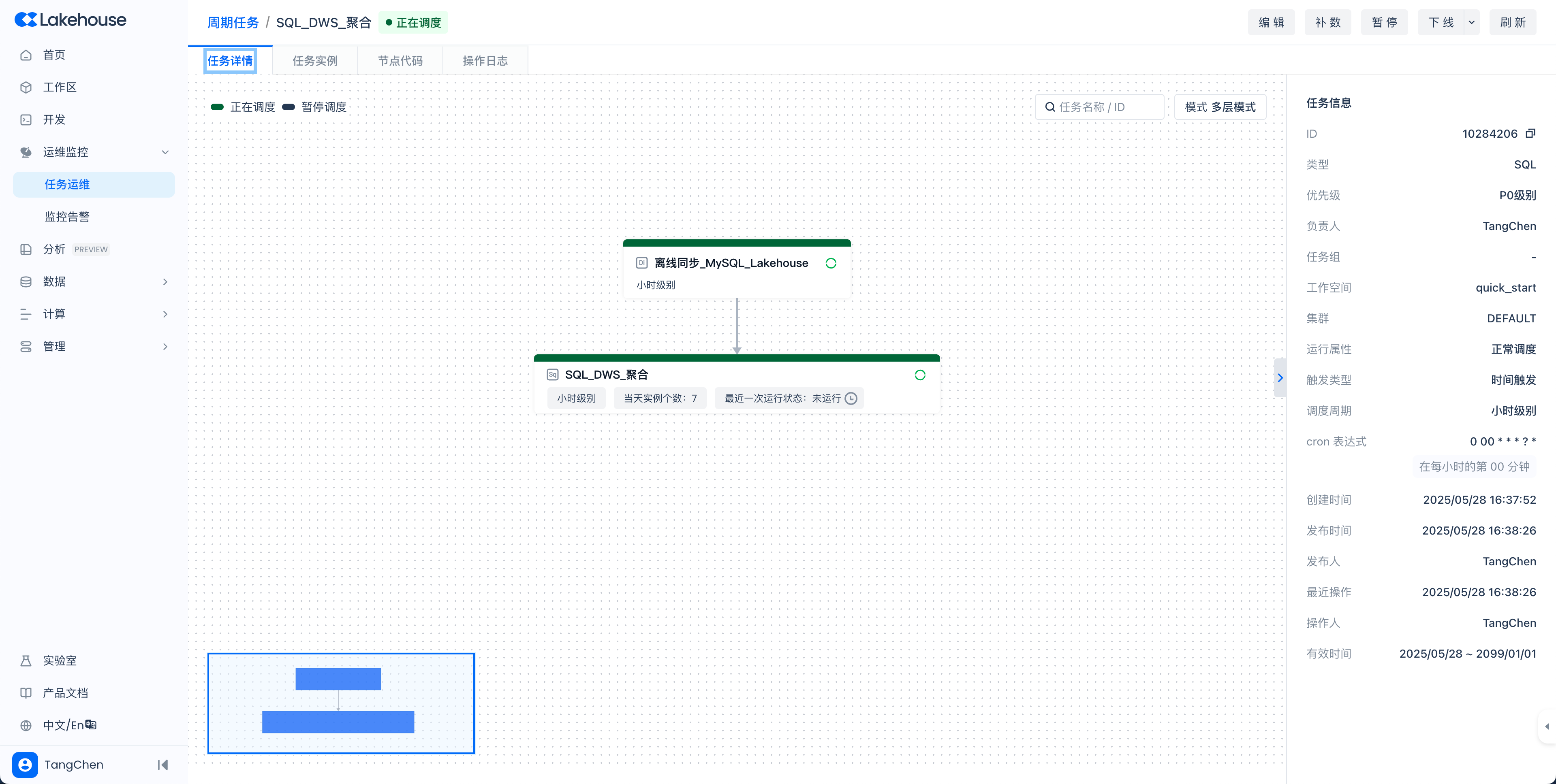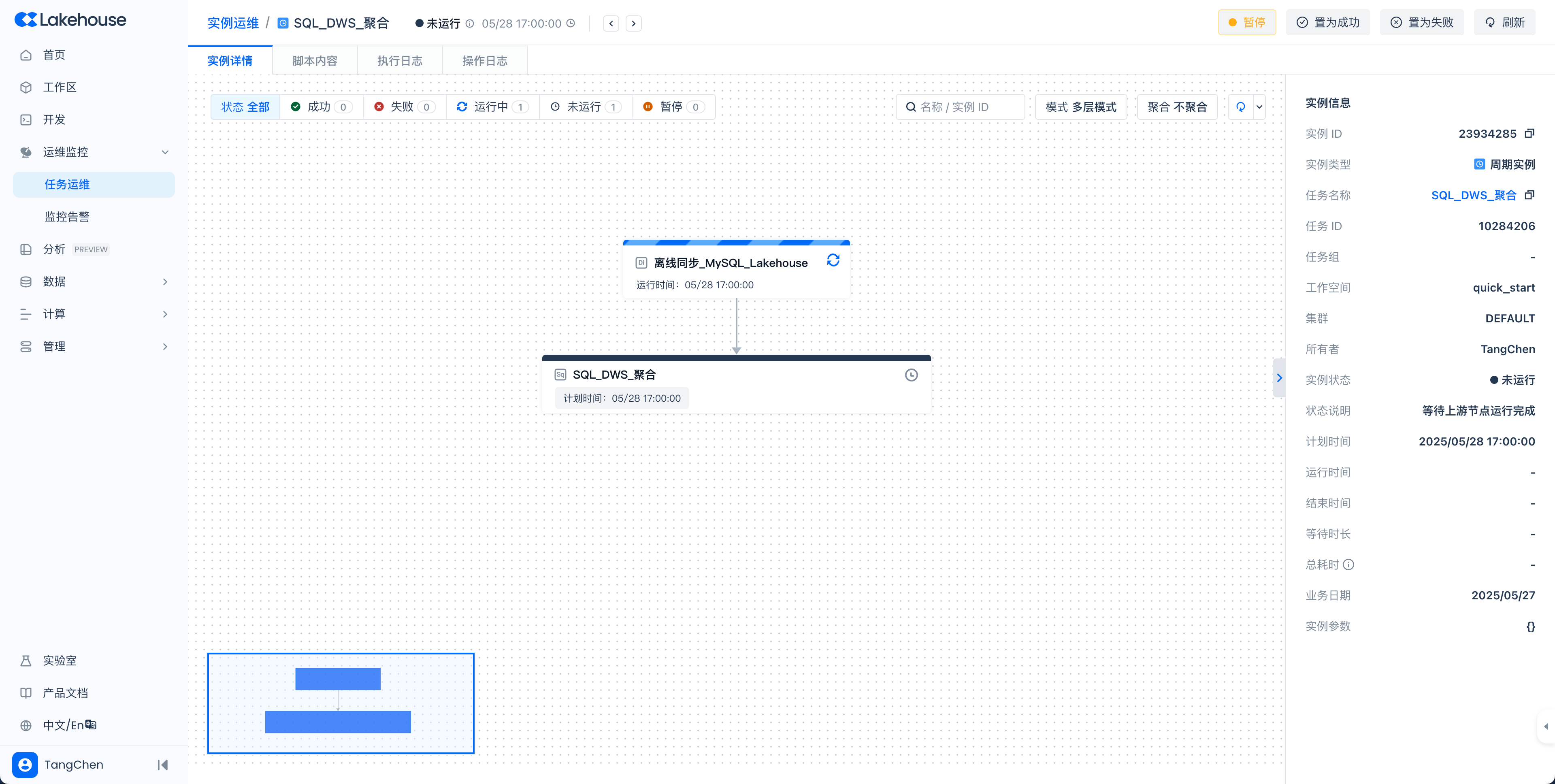 查看任务的详情,如下图所示,和预期一致,SQL任务依赖了同步任务: