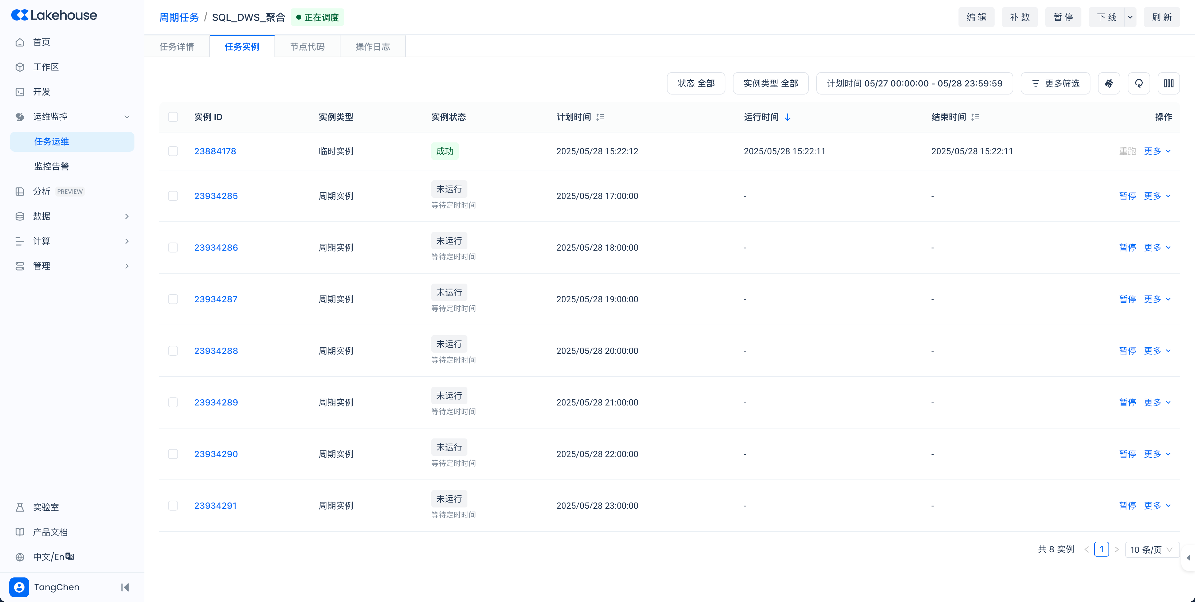 - 您可以阅读 任务和实例运维 的帮助文档来详解了解如何对任务和实例进行各种运维操作。