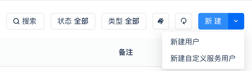 点击页面右上角的新建按钮,选择“新建用户”即可开始创建一个用户账号。