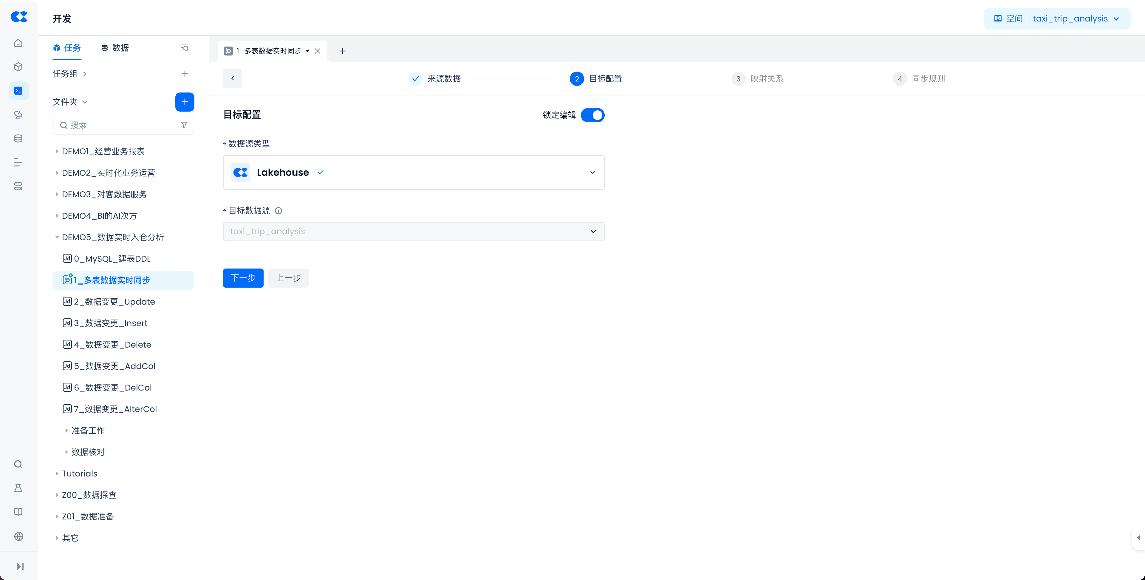 完成上述配置后,下一步在“目标配置”里设定目标数据源类型、数据源名称等配置项。