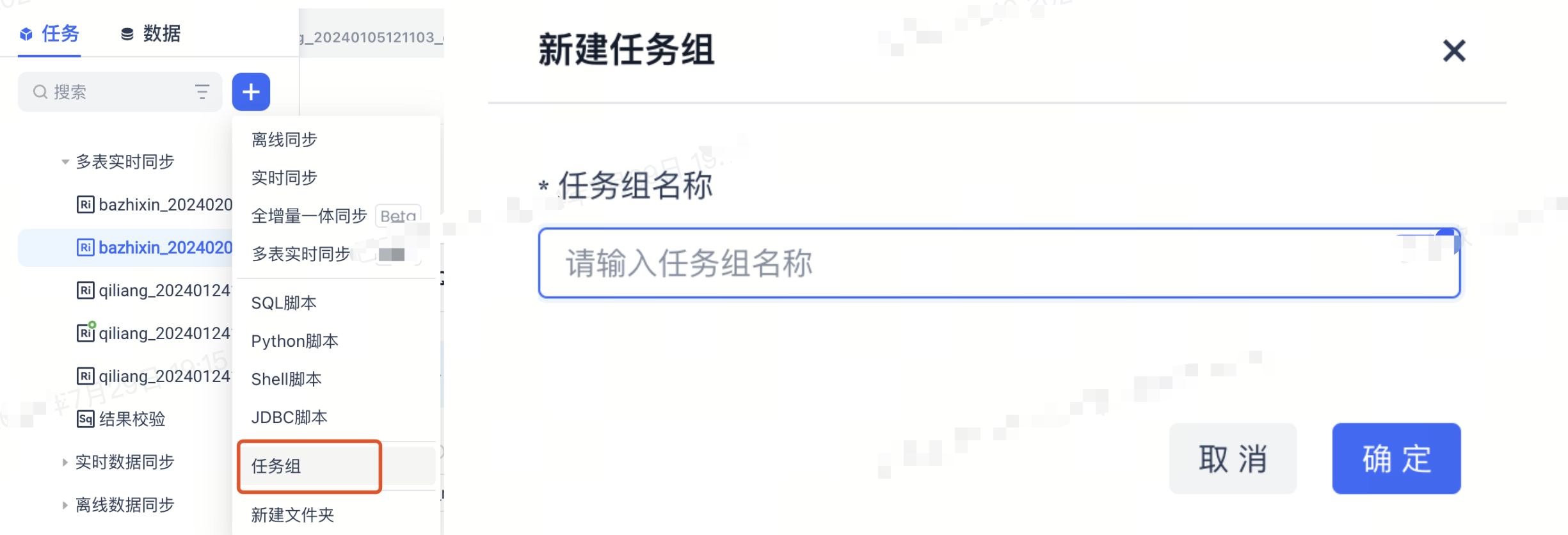 1)任务组内仅支持添加/创建周期任务,暂不支持实时任务。