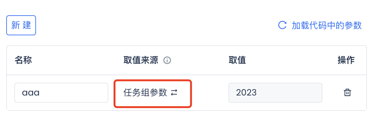 点击任务组内操作区域的「参数」tab,进入任务组参数配置界面中。