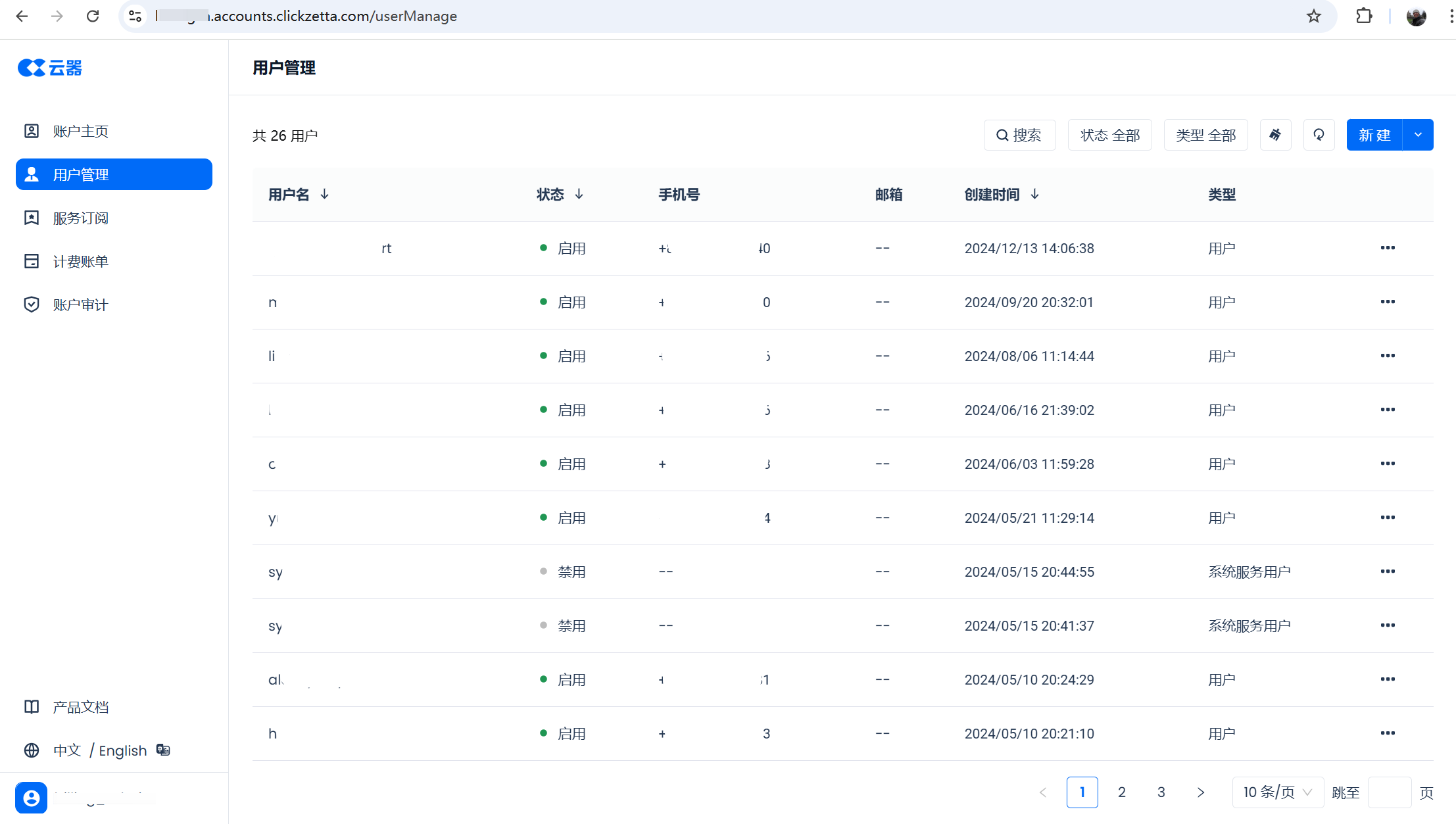 全局用户是在云器平台上进行全局管理和配置的用户。每个用户是系统内的一个独立身份,具备独立的用户名和密码。在一个账户中,用户名(user_name)必须唯一,以区别不同的用户身份。不同用户之间的手机号、邮箱等信息可以重复。