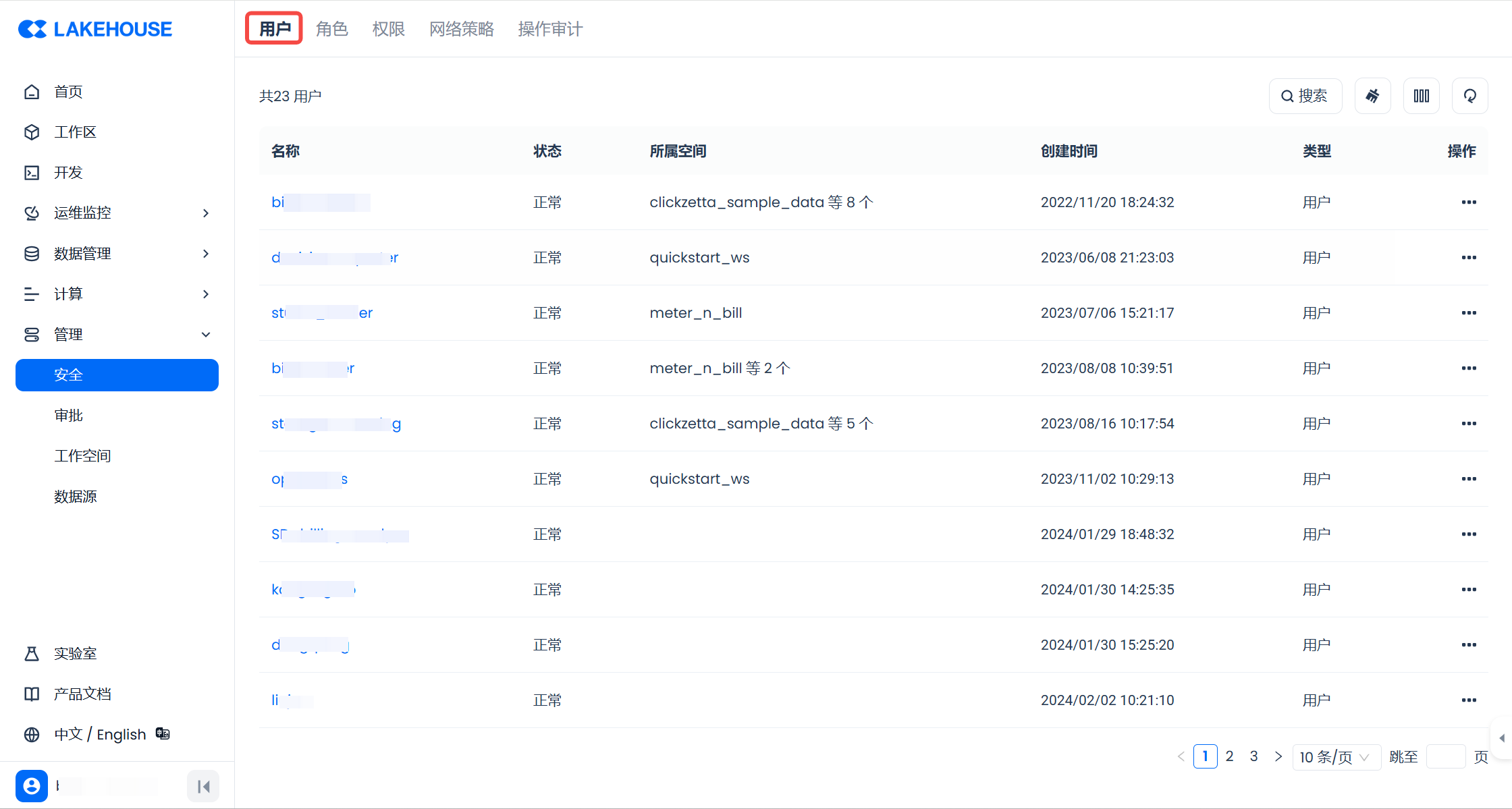 Lakehouse 中的用户类型主要分为 普通用户 和 服务用户: