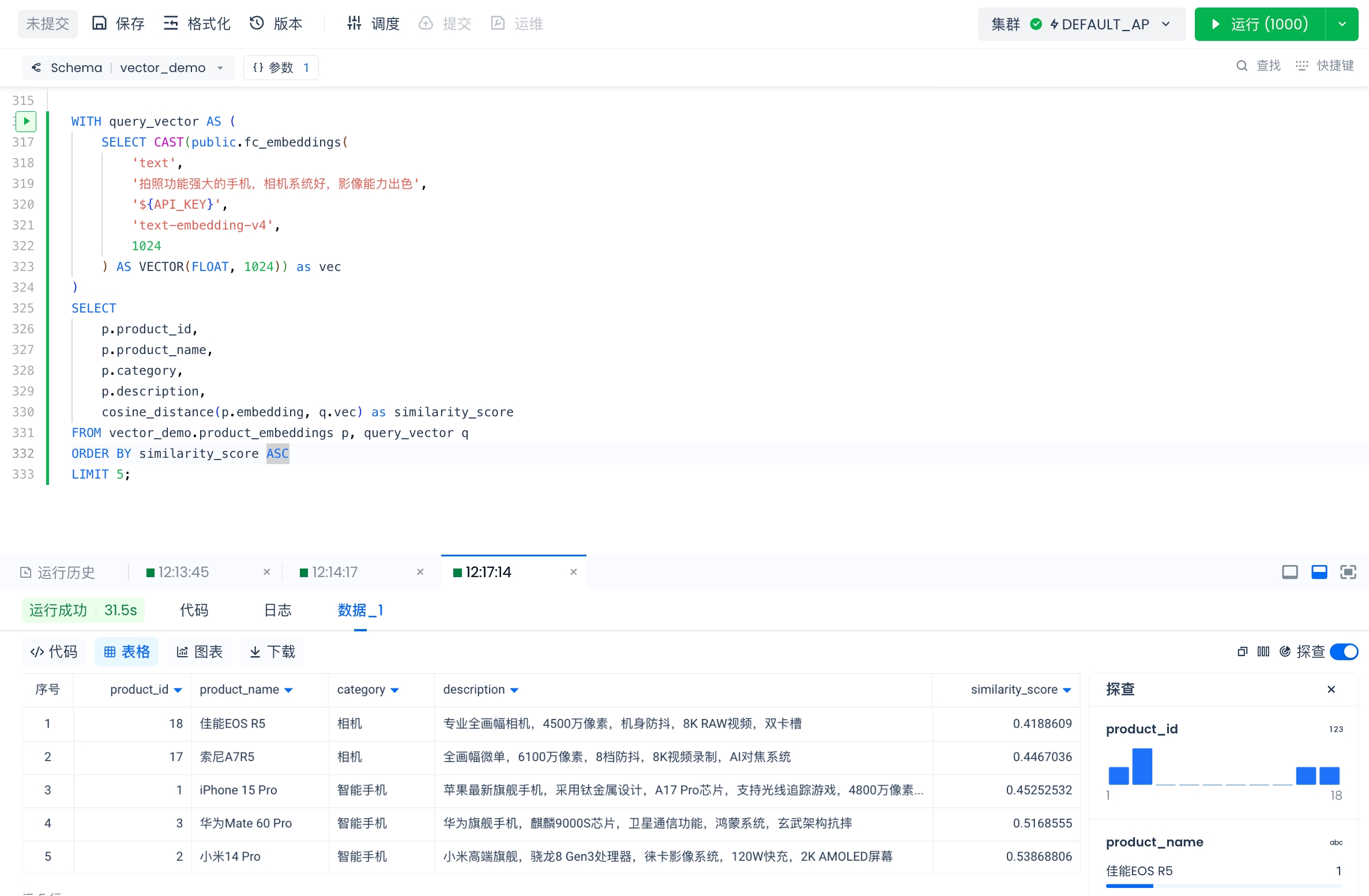 SELECT public.fc_embeddings('text', '测试查询', '${API_KEY}', 'text-embedding-v4', 1024) as vec