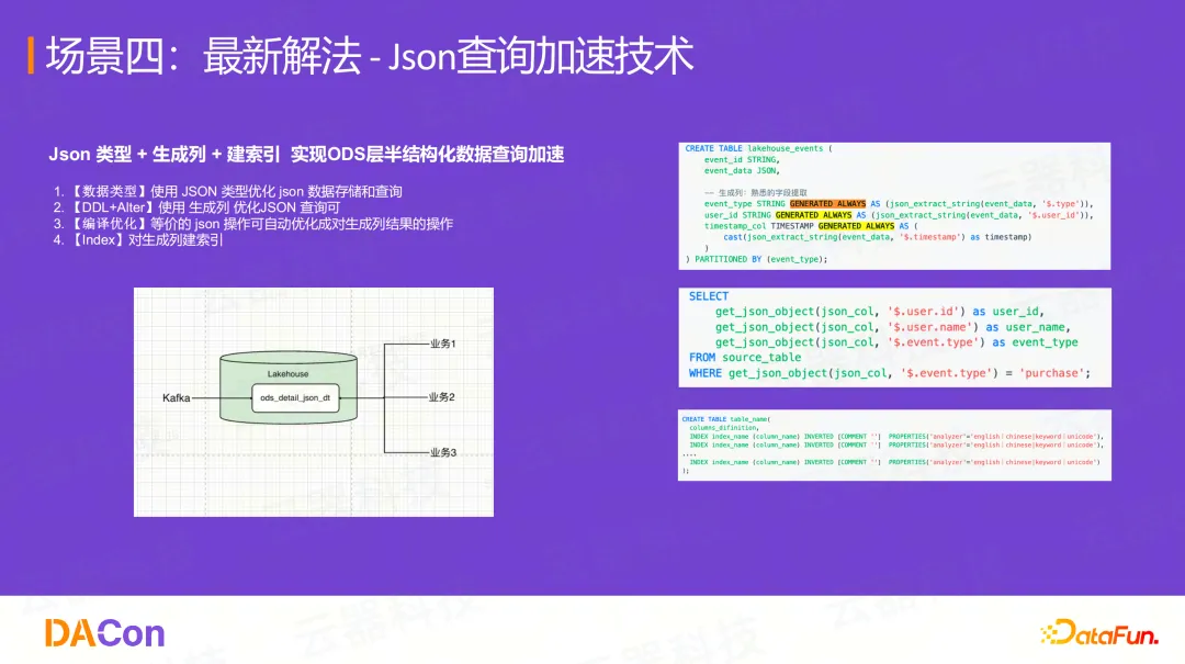 单表有数百TB的JSON数据,JSON中的Key有上千个且经常变动。业务人员需要对原始明细数据进行即席分析和抽样。