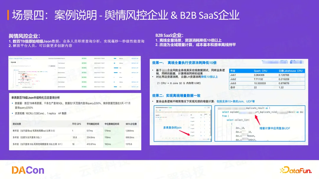 - 舆情风控企业: 实现了数百TB级原始明细JSON数据的毫秒~秒级即席查询,解放了平台人员