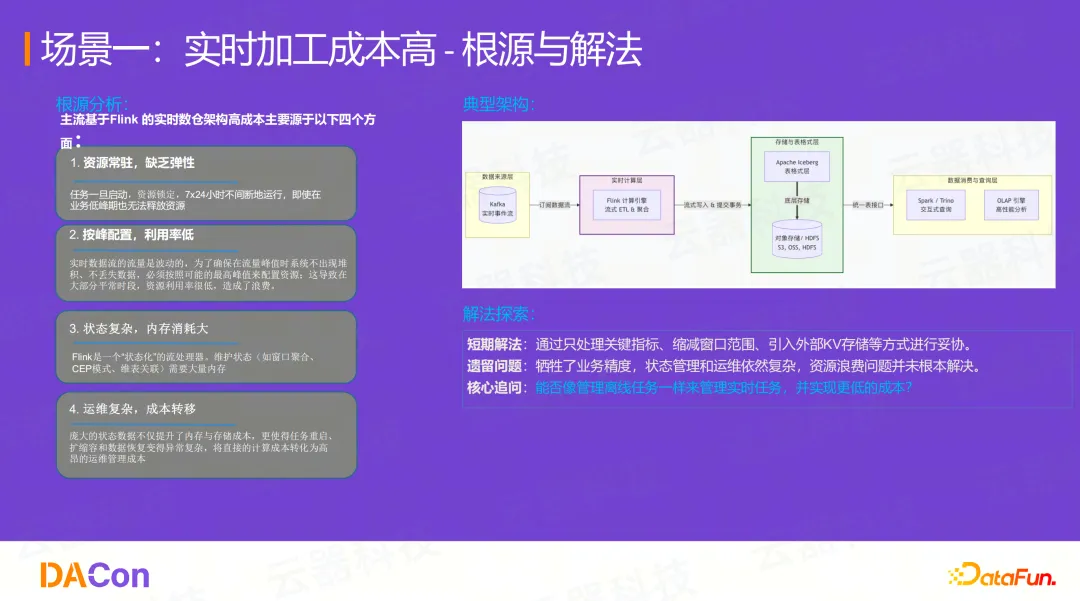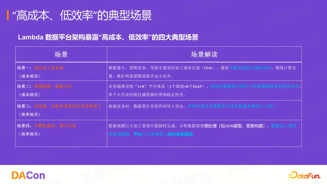 我们总结了Lambda架构暴露出的"高成本、低效率"四大典型场景,并针对每个场景提供了基于统一架构和通用增量计算的创新解法。
